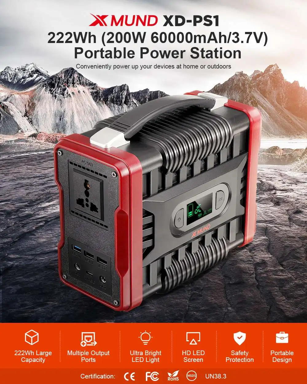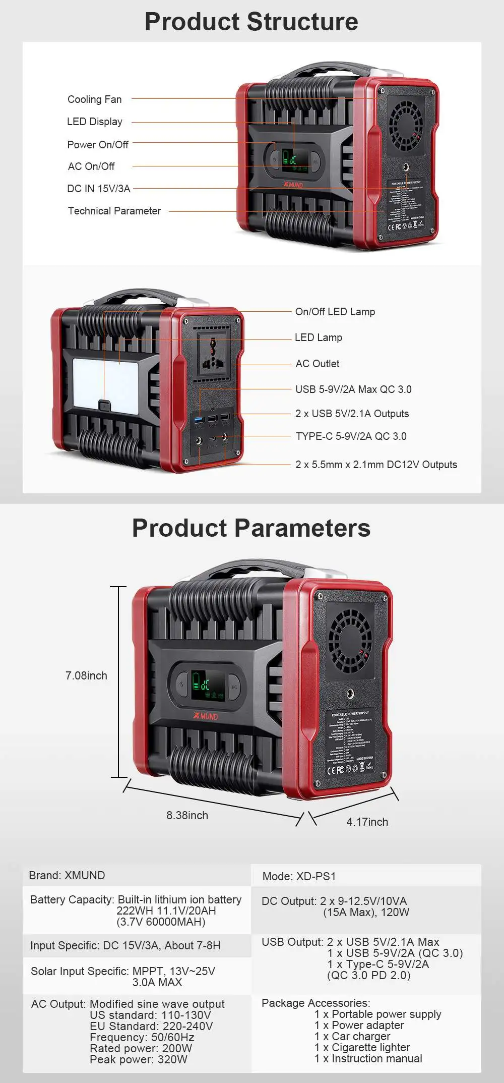Портативная электростанция 222wh, генератор солнечной энергии, аварийный источник энергии, резервная батарея для наружного кемпинга, портативный внешний аккумулятор