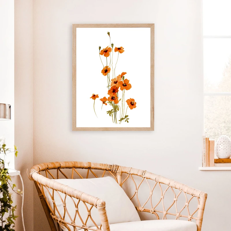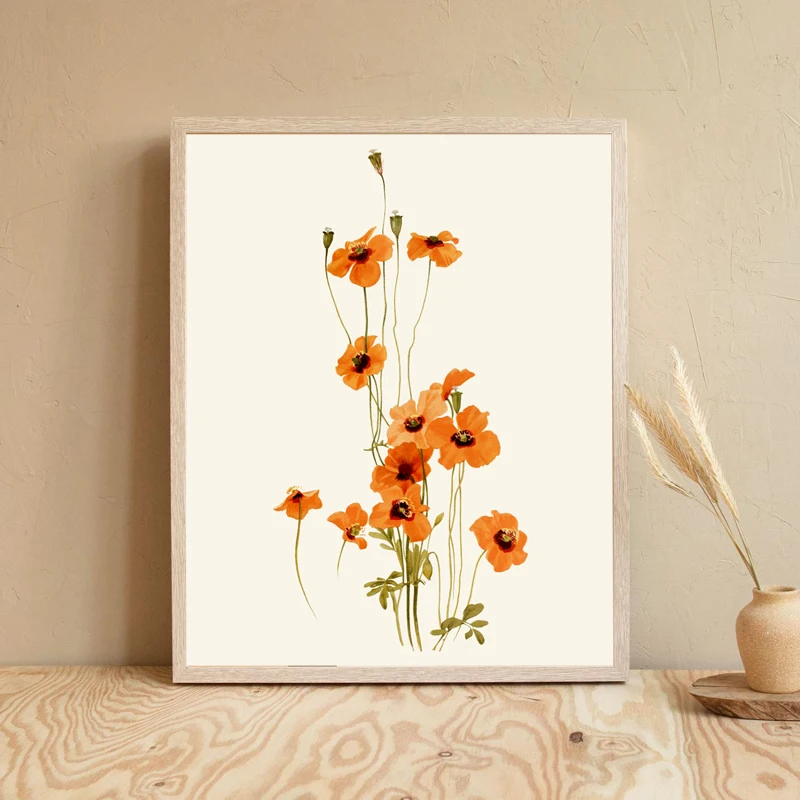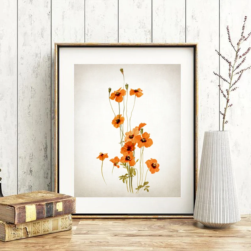 Винтажный постер с изображением апельсинового мака и цветов, Картина на холсте с изображением цветков ветра и мака, растительный постер с иллюстрациями, декор для гостиной