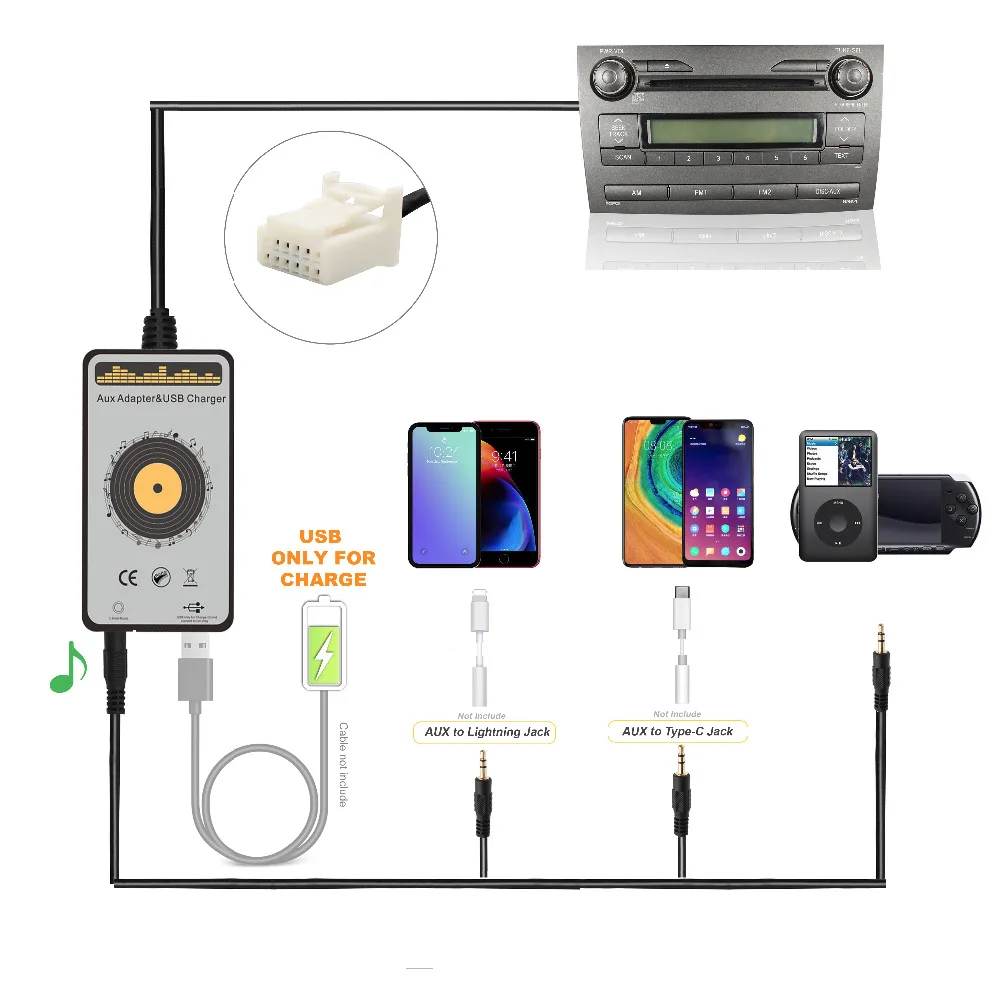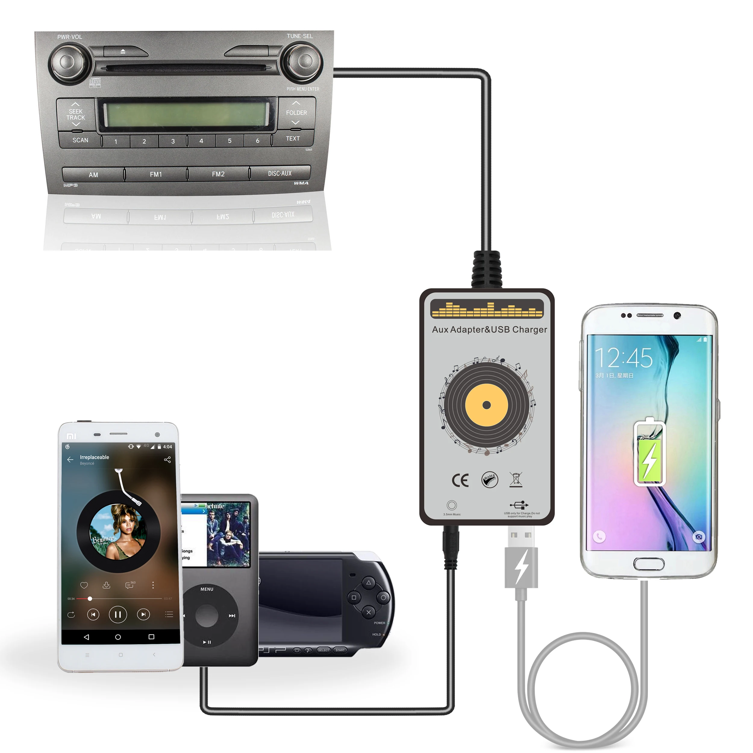 Автомобильный стерео AUX вход и интерфейс зарядки USB 3,5 мм Aux адаптер для Toyota(6 + 6) RAV4, Avensis, Corolla, Tacoma