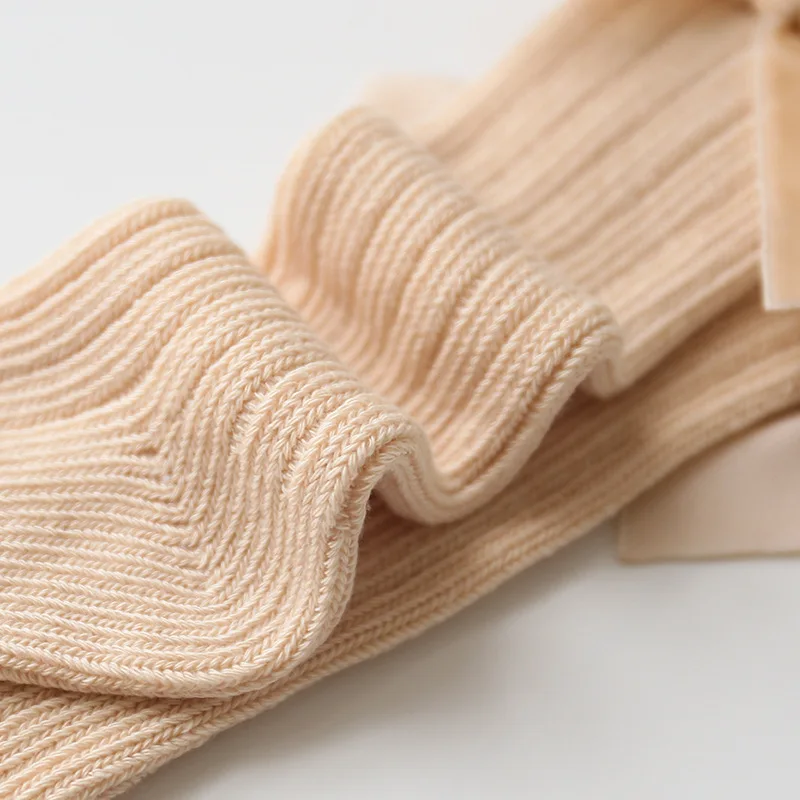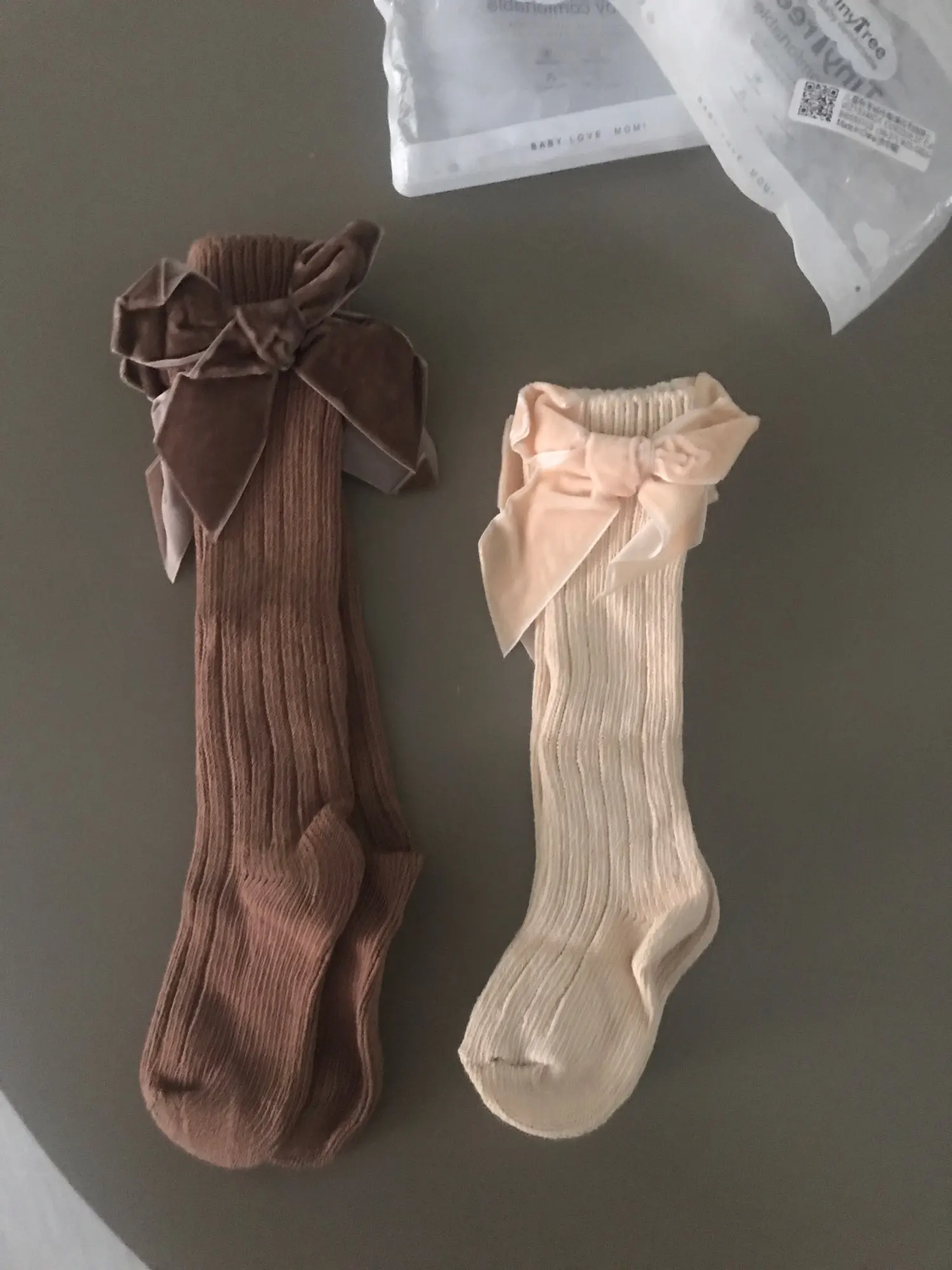 Гольфы для маленьких мальчиков и девочек, однотонные хлопковые эластичные гольфы с бантом, Осень-зима, носки новорожденного малыша