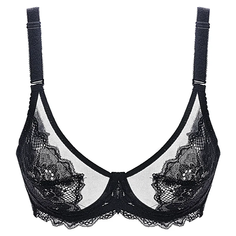 Бюстгальтер Xianqifen Женский, ультратонкий черный кружевной пикантный Бралетт, прозрачный топ на косточках с чашками пуш-ап, ABCDE