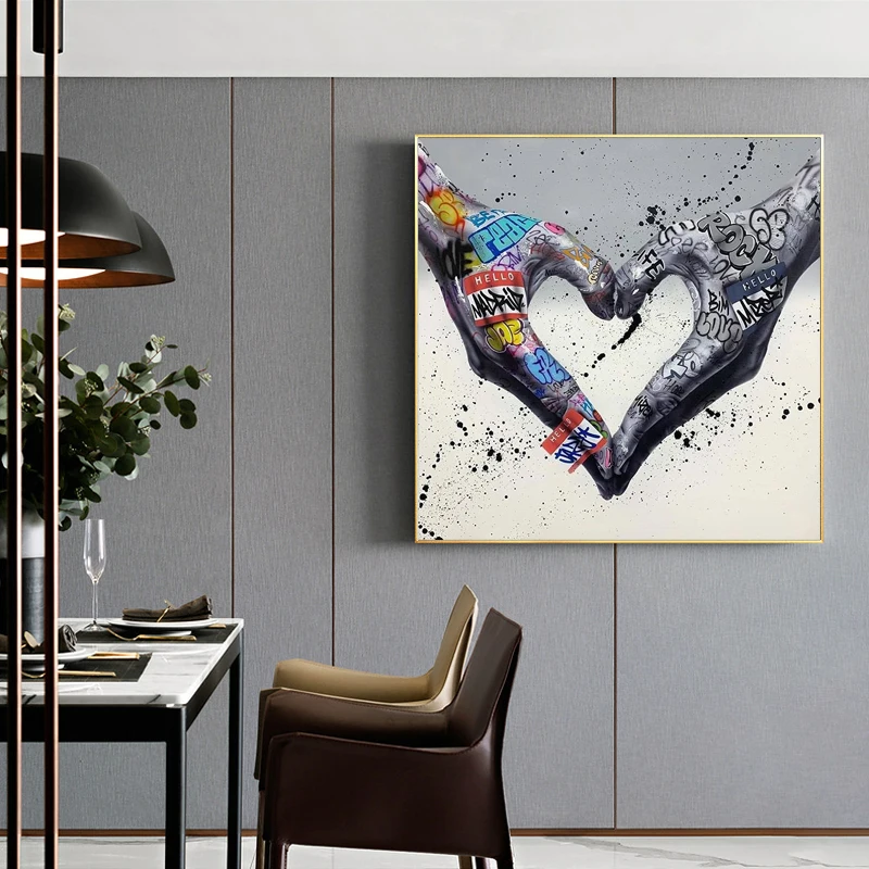 Картина на холсте с изображением жеста сердца граффити, постеры с изображением ладоней, Настенная картина для гостиной, домашний декор