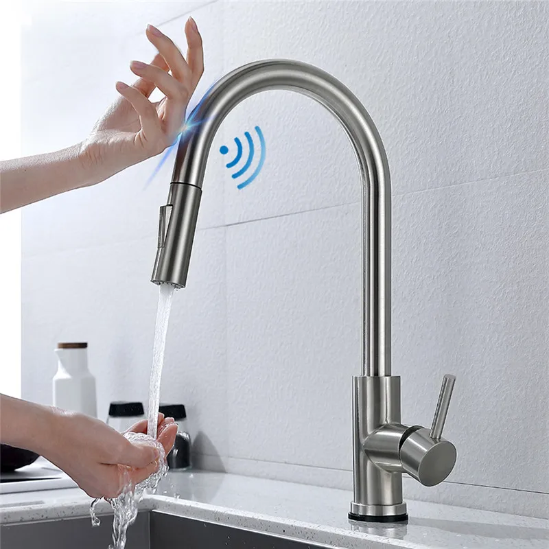 Новый смеситель для кухни с умным датчиком, сенсорный кран для раковины, смеситель с одной ручкой, выдвижной кухонный смеситель для душа с поворотом на 360 градусов