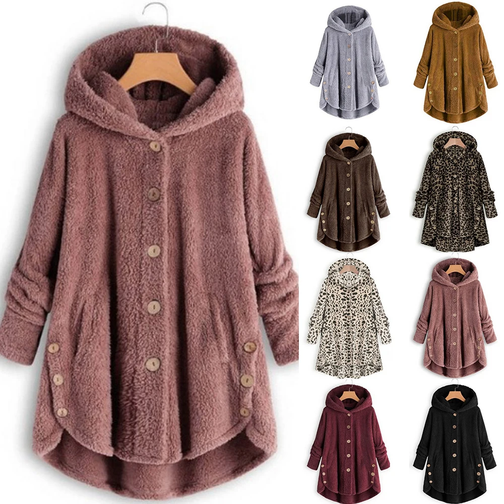Зимнее женское пушистое пальто, Мягкая флисовая куртка на пуговицах с хвостом, размера плюс, Свободное пальто с капюшоном, повседневная верхняя одежда, Женская парка