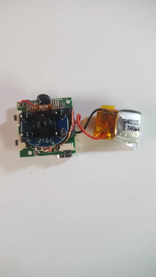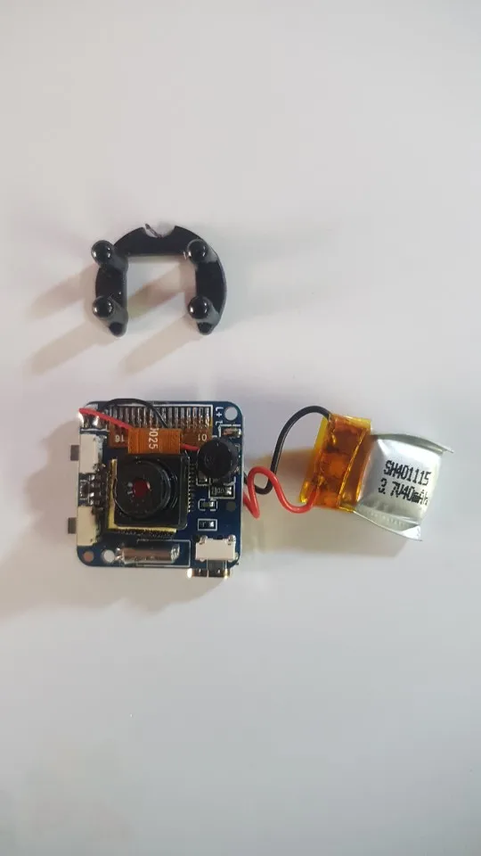 Это обман, он не приносит реальную батарею, в технических характеристиках он говорит, что он включает в себя батарею 200 мАч, на самом деле он приносит батарею 40 мАч, поэтому он делает только 10 минут непрерывной записи. Кроме того, у некоторых камер есть инфракрасный светодиод обмана (пластик), как вы можете видеть на изображениях