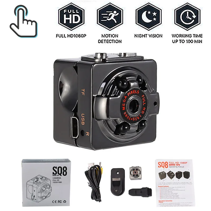 Миниатюрная уличная камера SQ8, беспроводная видеокамера HD 1080P с функцией ночного видения, миниатюрный регистратор DV с датчиком движения