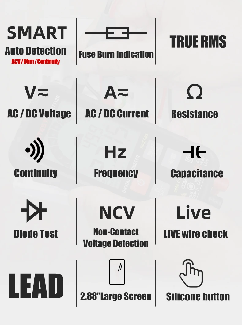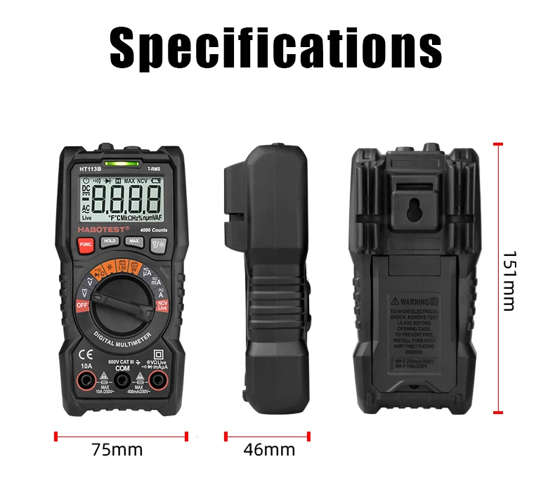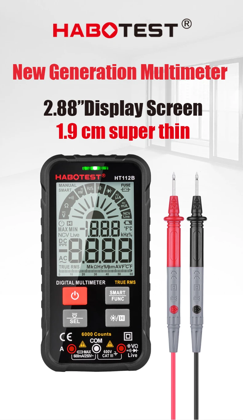 Профессиональный цифровой мультиметр, автомобильный тестер, истинное среднеквадратичное значение, напряжение 600 В, ток, Ом, тестер, высокоточный Электрический измеритель HABOTEST