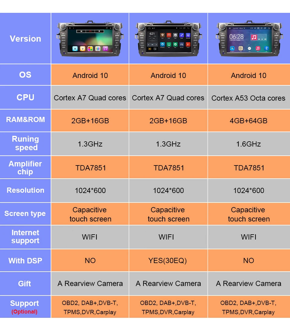Автомагнитола 2 Din, мультимедийный стерео-проигрыватель с Android 10, GPS-навигацией, российским DVD-плеером, для Toyota Corolla 2007-2011