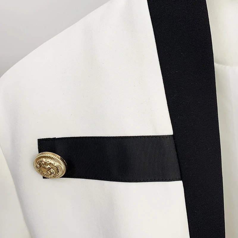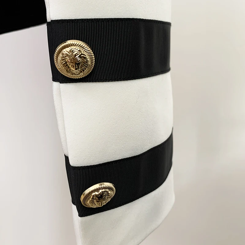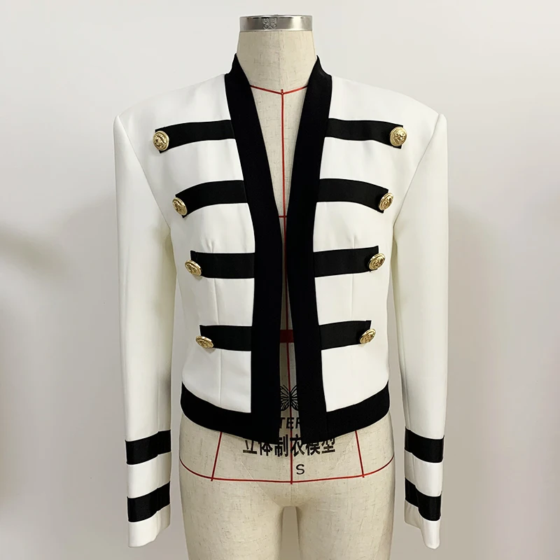 Новинка 2022, дизайнерская женская куртка в стиле HIGH STREET, Женская куртка с цветными блоками и воротником-стойкой и ремешком на пуговицах в виде льва