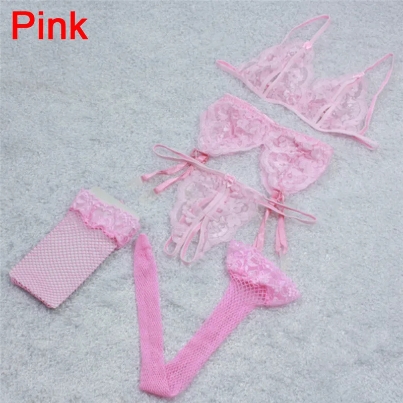 (1 комплект = 4 шт.) кружевной Цветочный Топ, сексуальный полый бюстгальтер + подвязка с цветами пояс для подтяжек + стринги, нижнее белье + высокие колготки в сеточку
