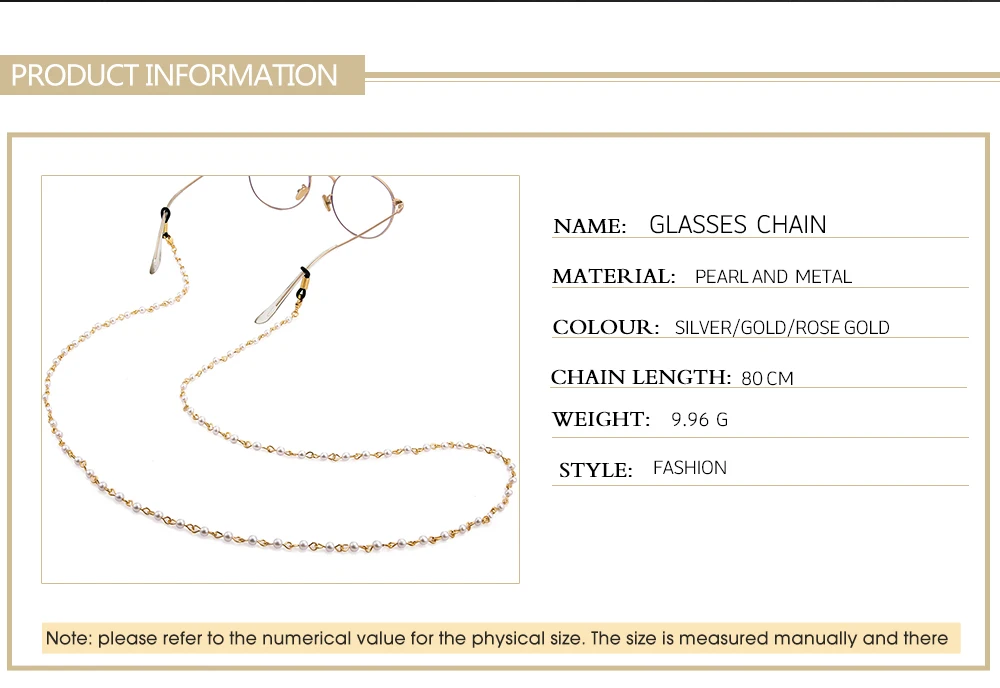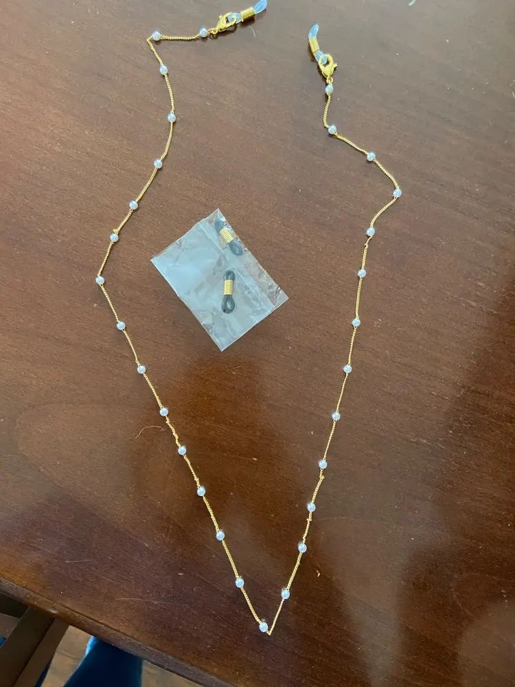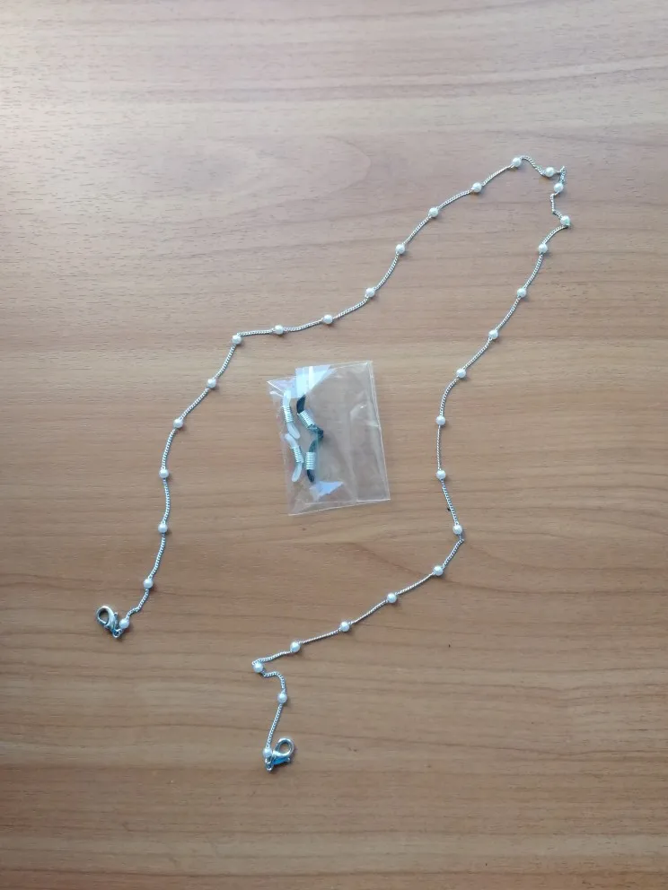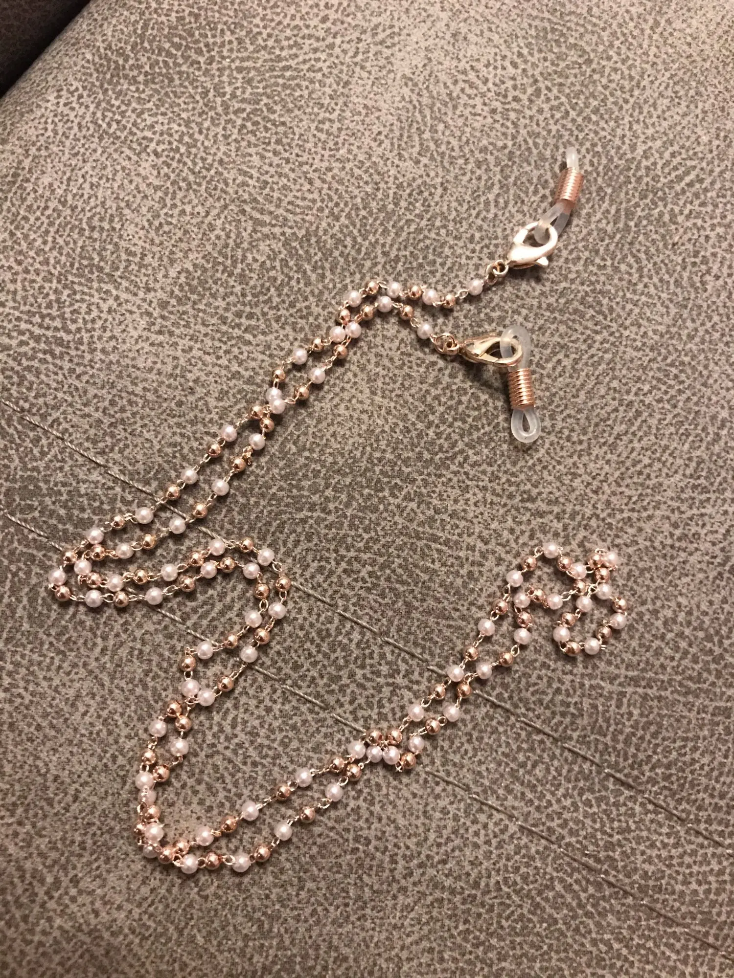 Заказанный 12/1 получил 12/18. Люблю универсальность использования цепочки для очков или масок (выбирая, какие крепежи использовать). В комплект входят дополнительные застежки для очков, поэтому вы можете выбрать черный или прозрачный. Доволен серебром и розовым золотом с жемчугом. На мой вкус Золото было немного «слишком золотым».
