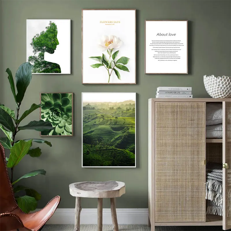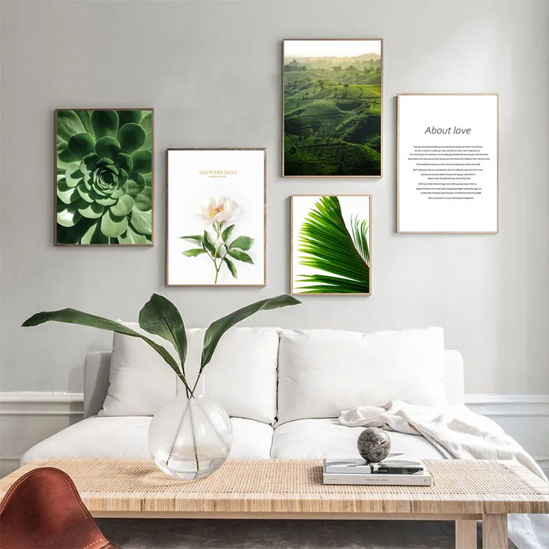 Зеленые настенные художественные принты с растениями, ретро постер ...