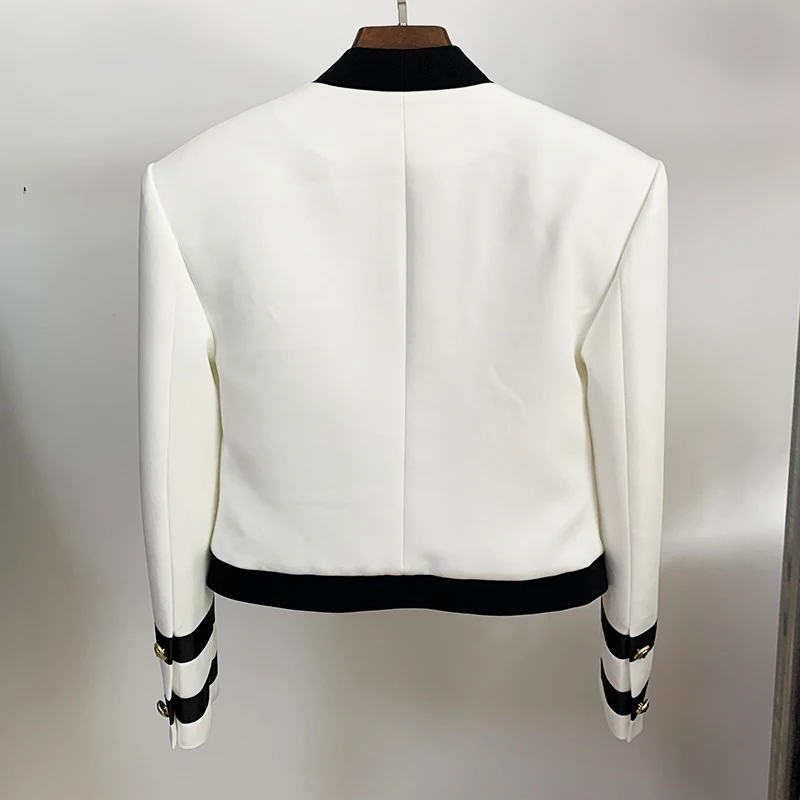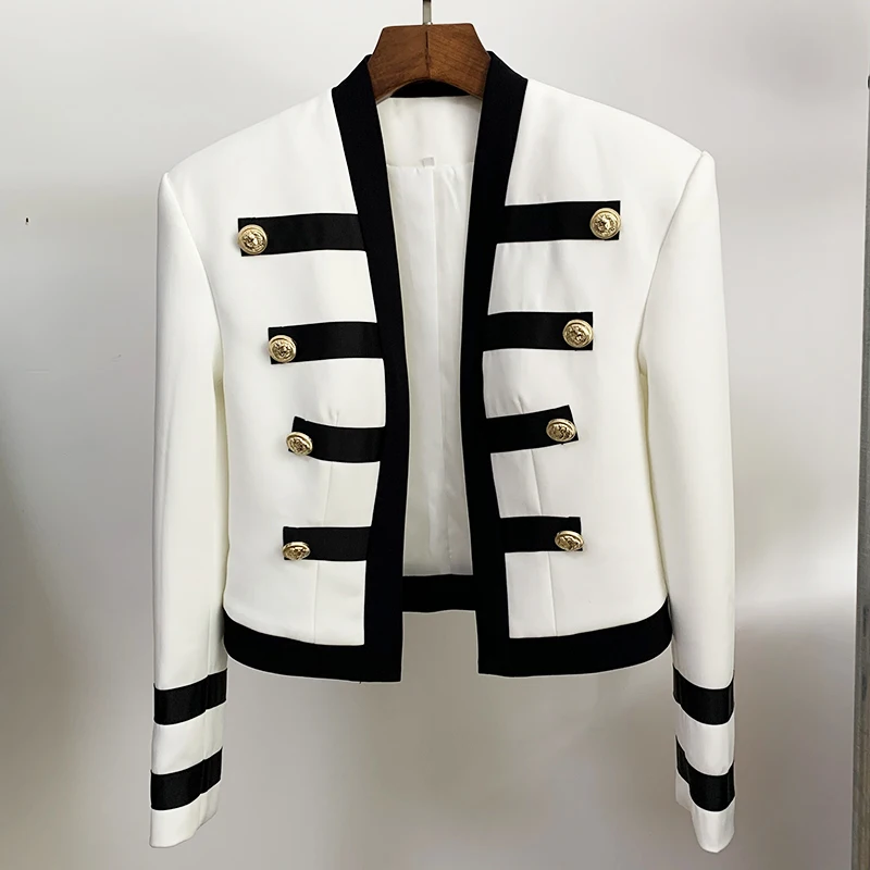 Женская модельная куртка на пуговицах, Черная куртка с открытыми плечами и воротником-стойкой, на пуговицах, 2022