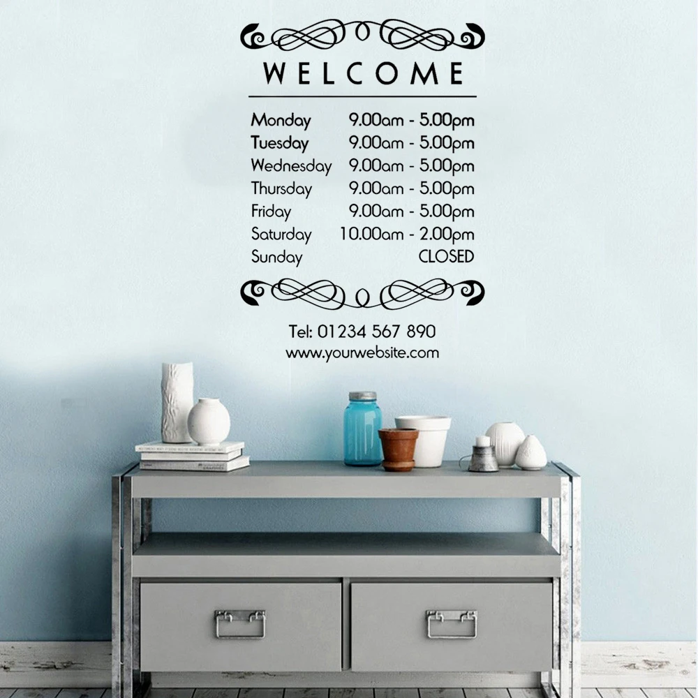 Часы работы раз знак самоклеющиеся витрину Стикеры наклейка Офис Ресторан Бар Кафе, искусственные поделки без отверстий, персонализированный стикер Стикеры PW969