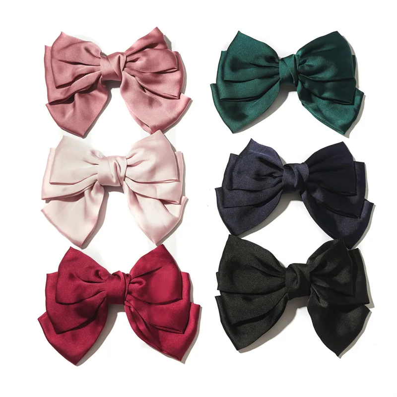 Заколка для волос с большим бантом женская, атласная заколка для волос, шифоновый аксессуар для волос