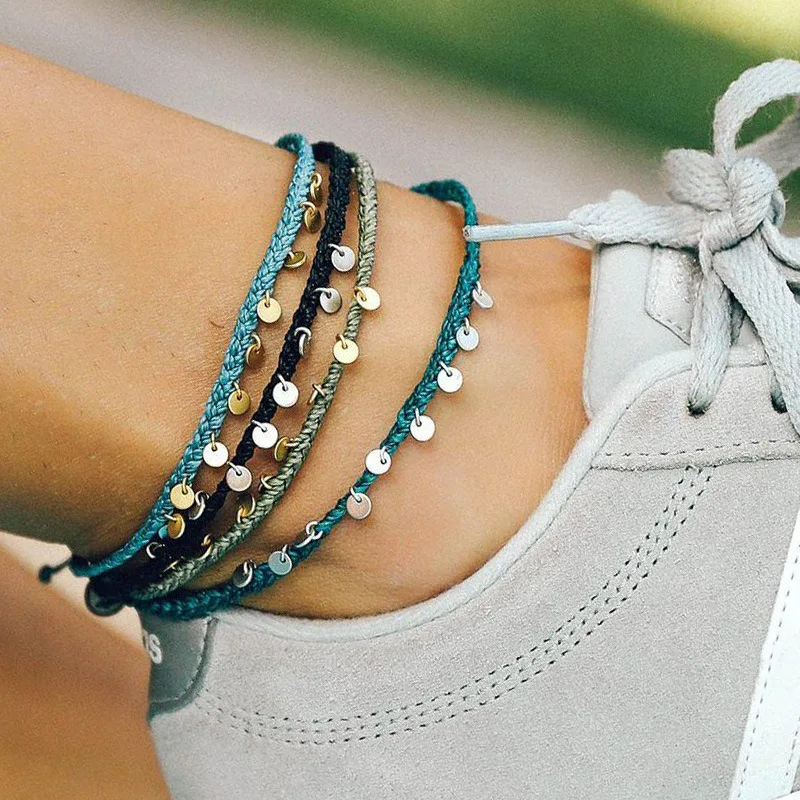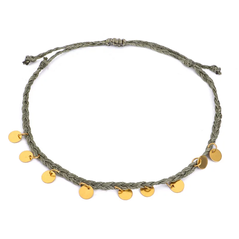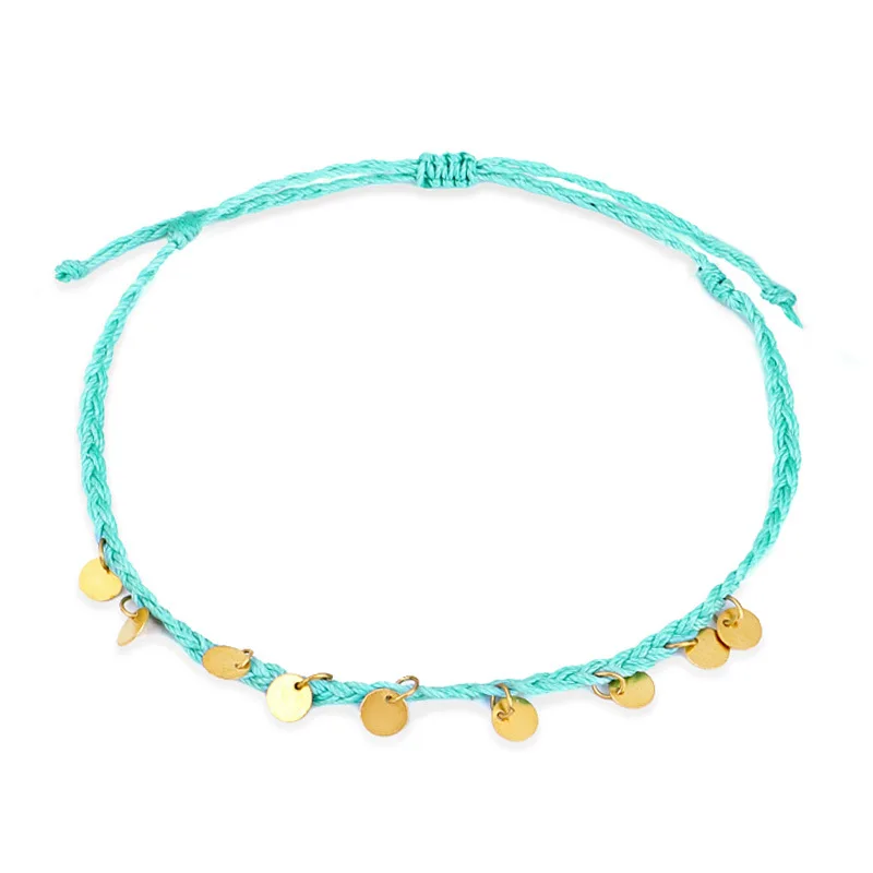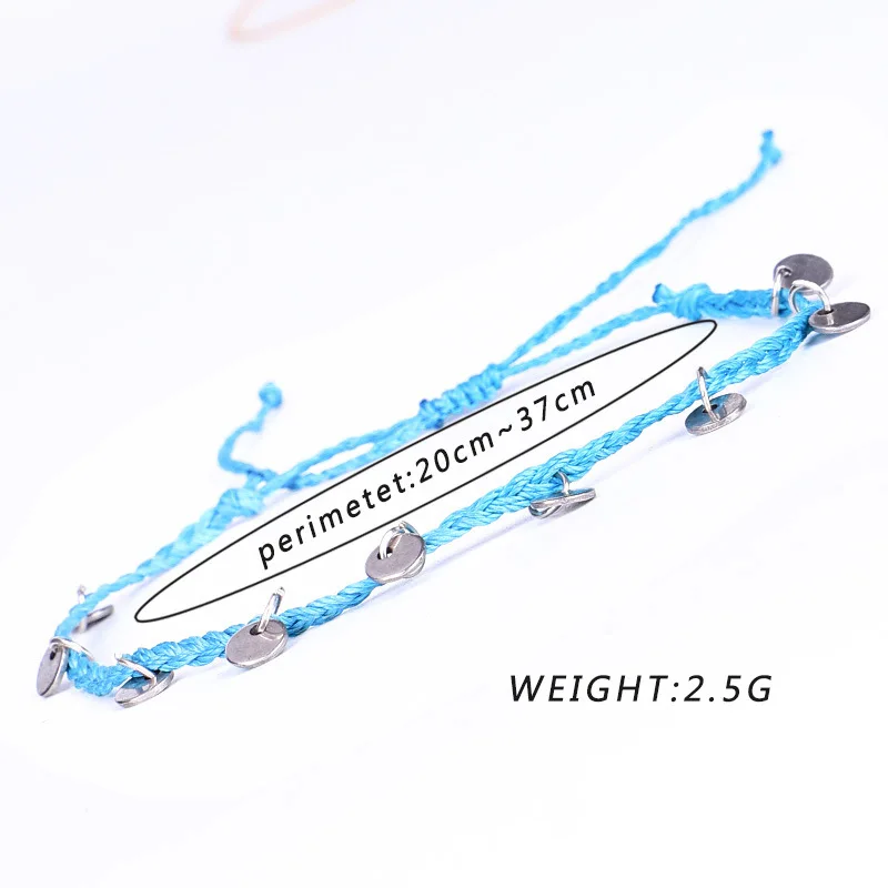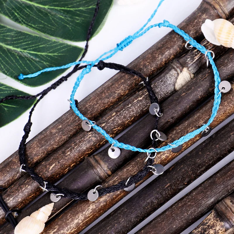 Лидер продаж 2020, ножные браслеты из вощеной нити, ручная работа, медный диск, подвеска, простой пляжный ножной браслет, ювелирные изделия для женщин, оптовая продажа