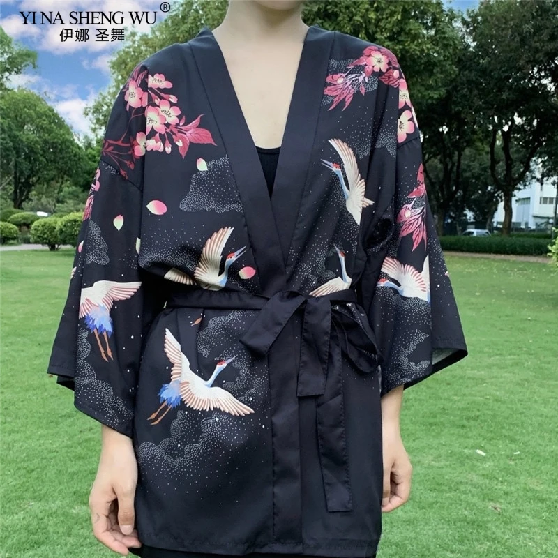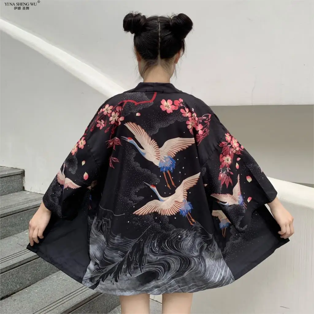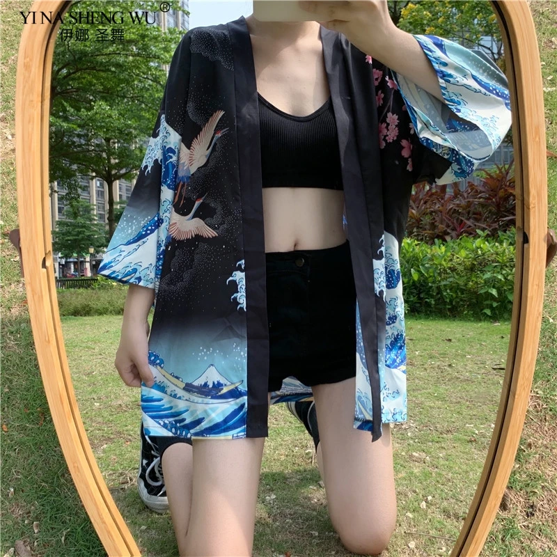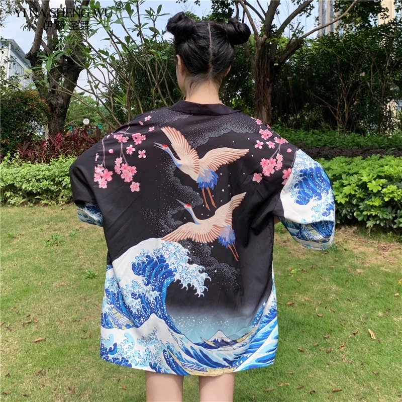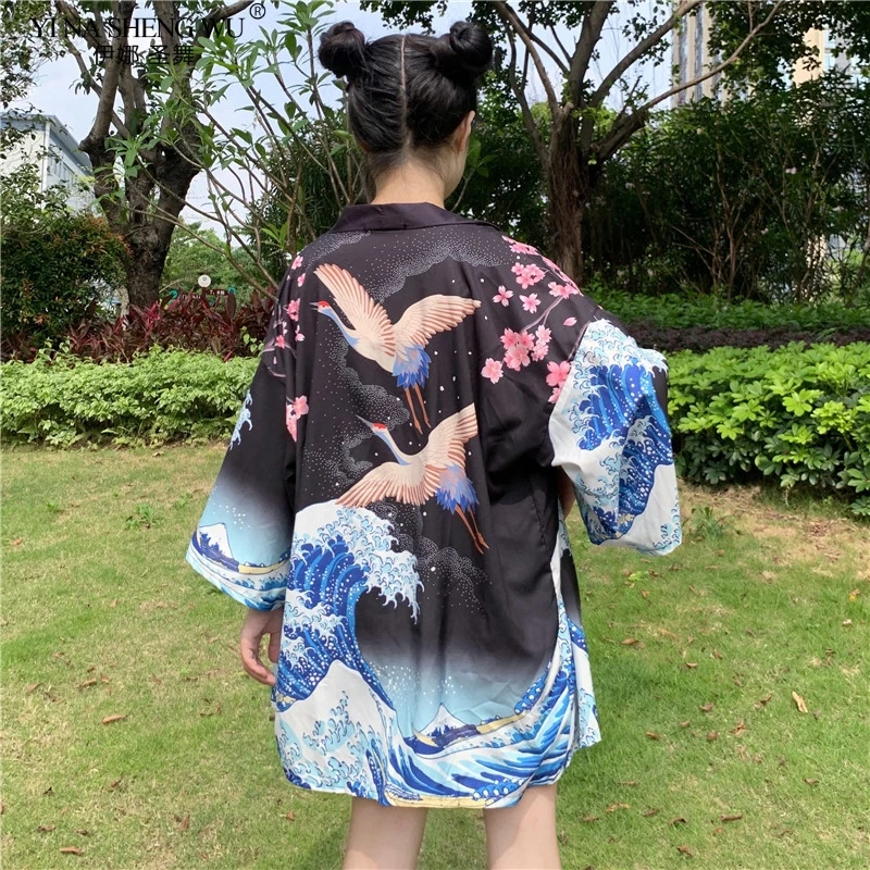 Кимоно с японским принтом укиё для мужчин и женщин, традиционный кардиган в стиле Харадзюку, уличная одежда костюм самурая, юката, хаори Оби