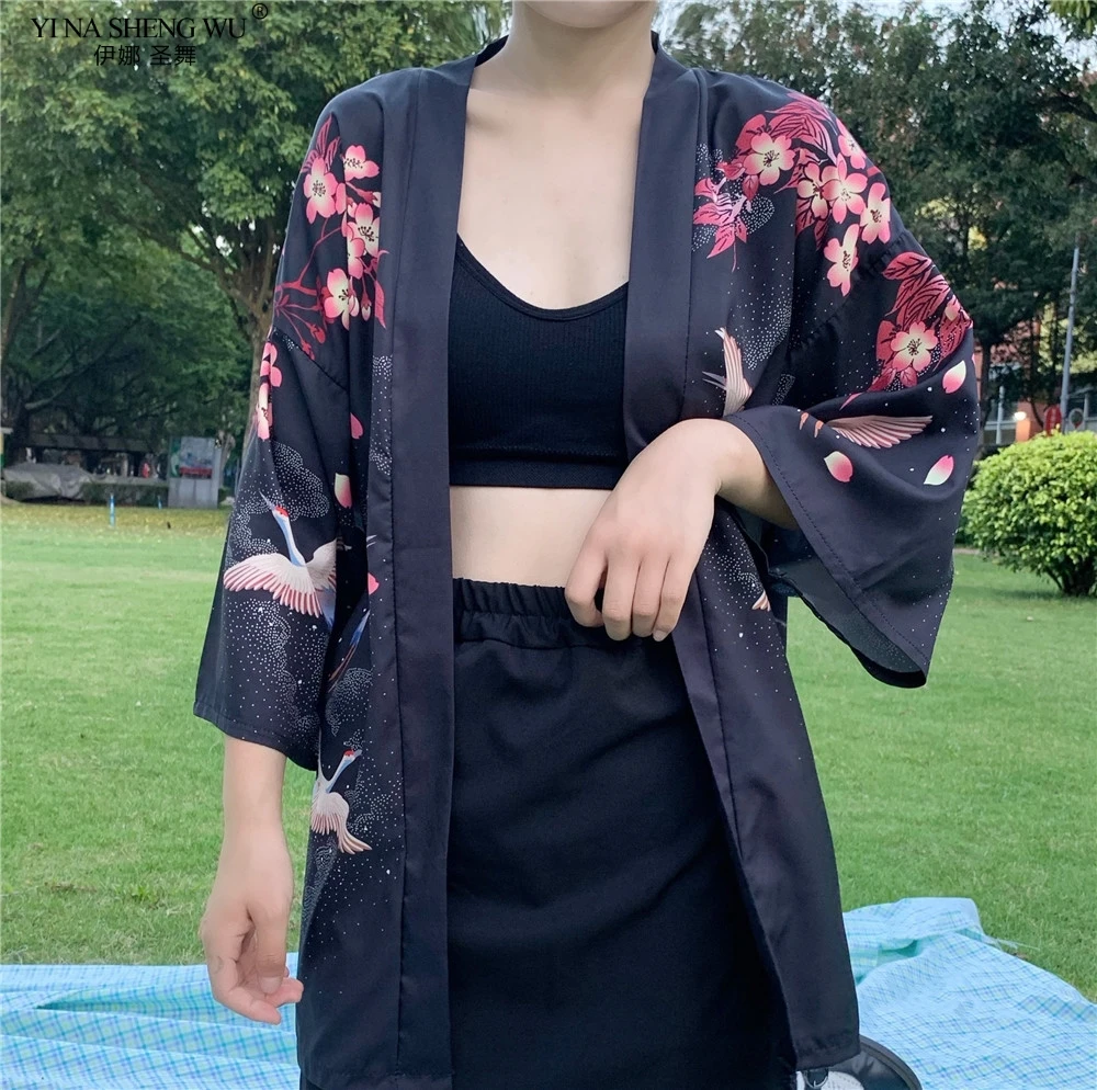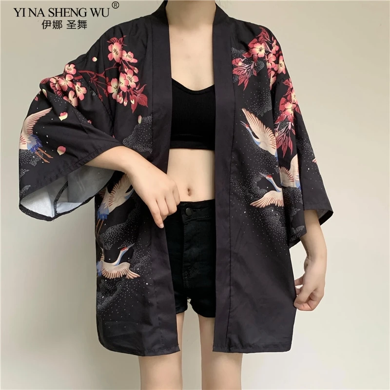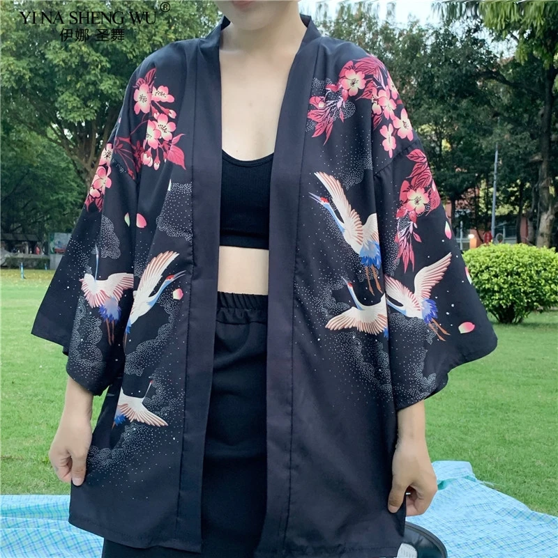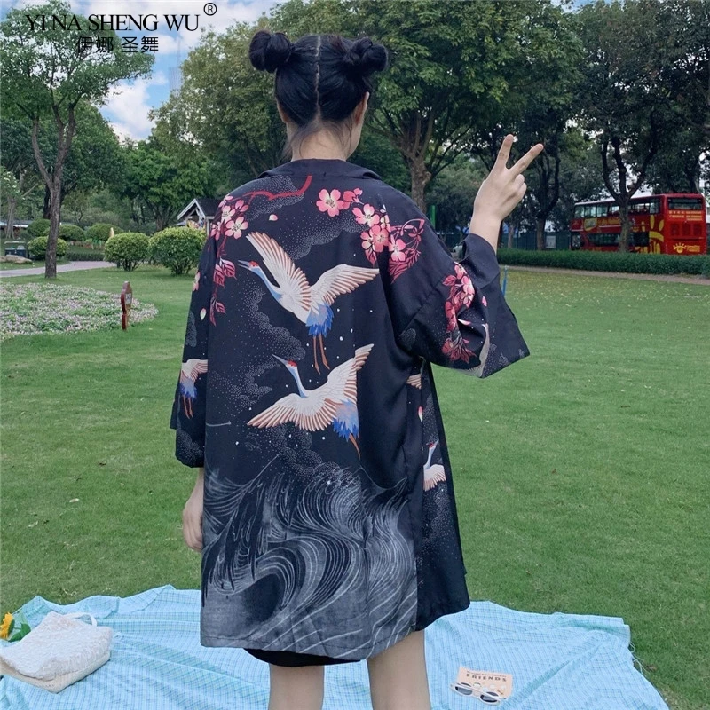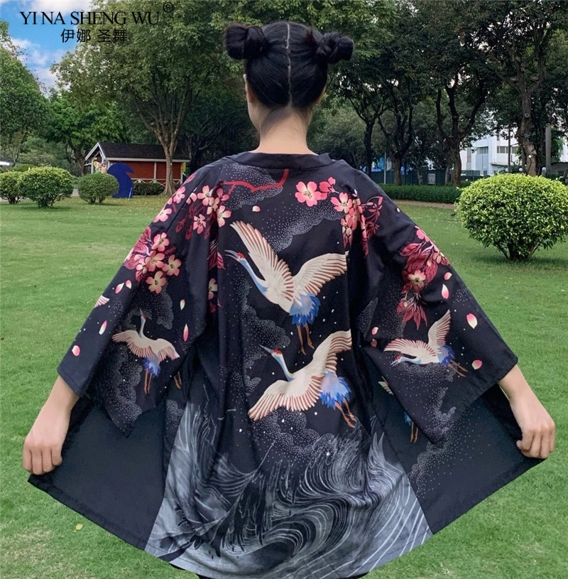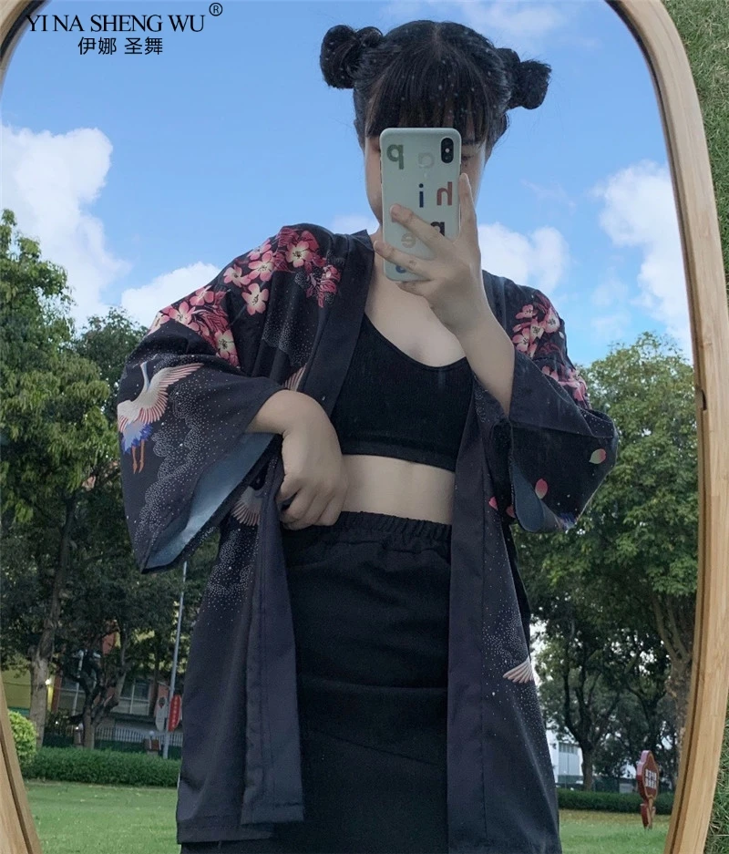 Кимоно с японским принтом укиё для мужчин и женщин, традиционный кардиган в стиле Харадзюку, уличная одежда костюм самурая, юката, хаори Оби