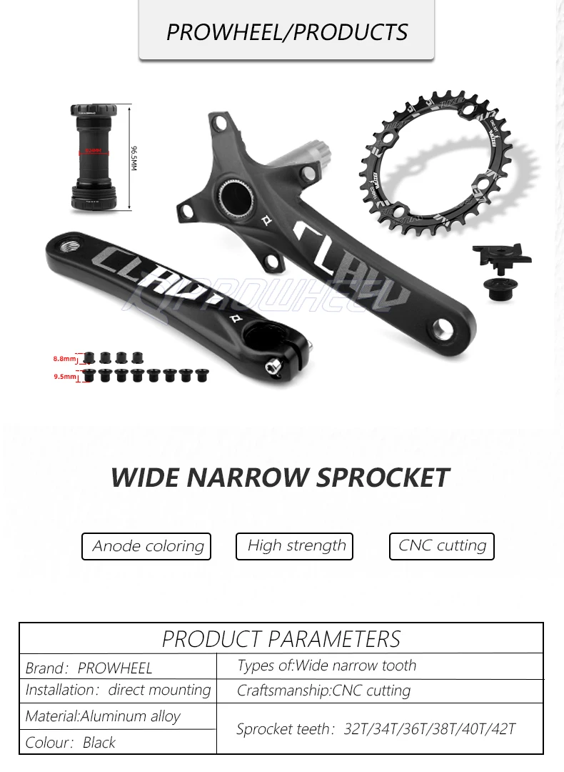 Шатуны PROWHEEL 104BCD, 175 мм, 170 мм, 303234363840424446485052T, Звездочка с нижним кронштейном, шатуны для горного велосипеда