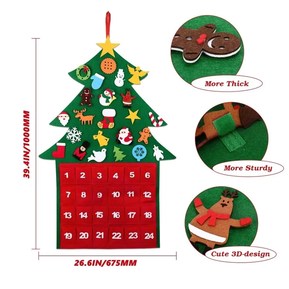 Рождественская елка из фетра, Рождественский календарь с карманами,...