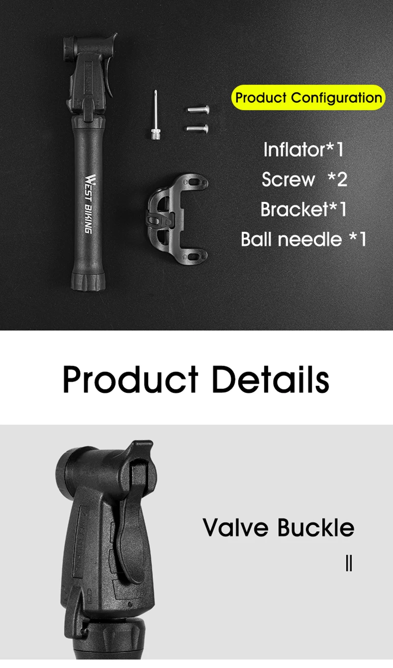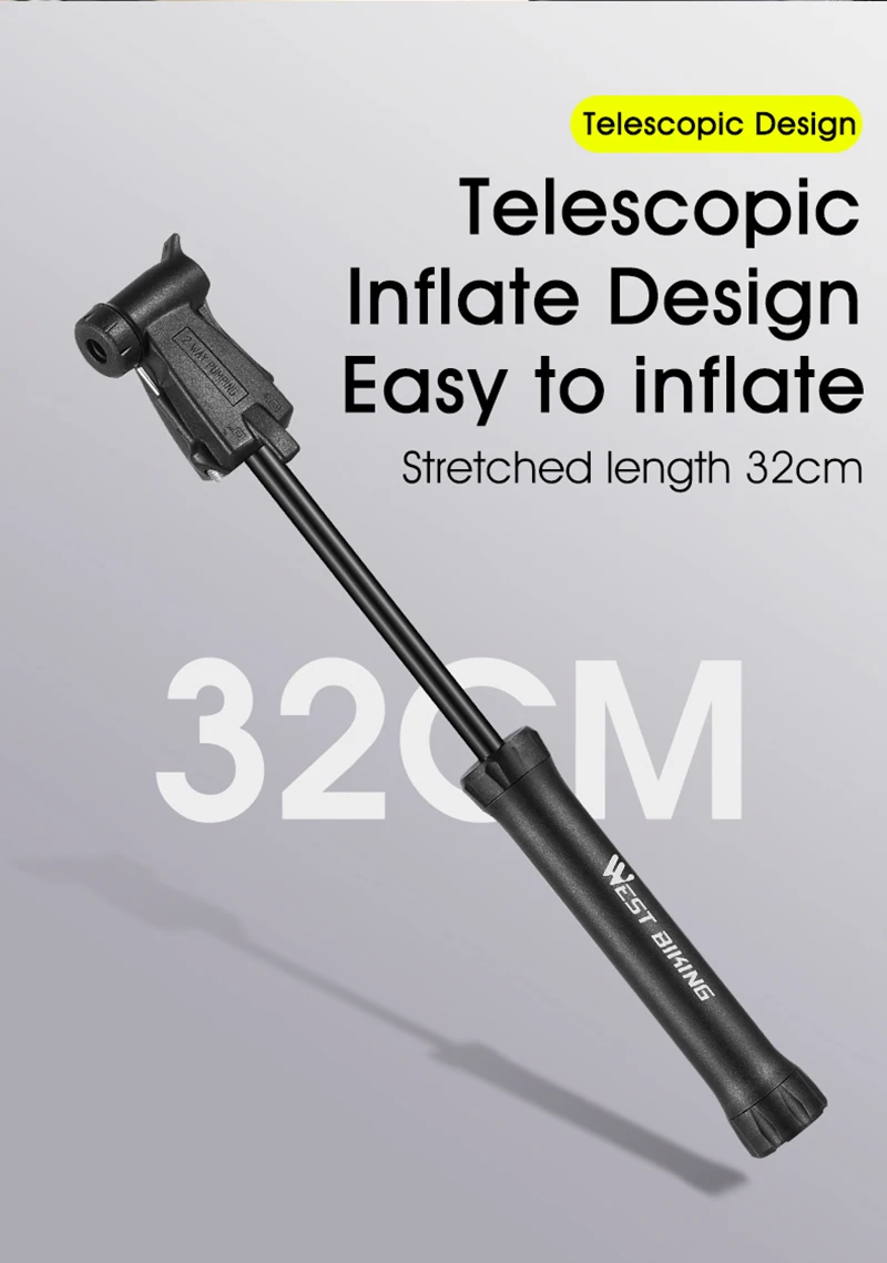 Велосипедный насос WEST BIKING, портативный мини-насос для горных и шоссейных велосипедов, с клапаном, аксессуар для велосипеда