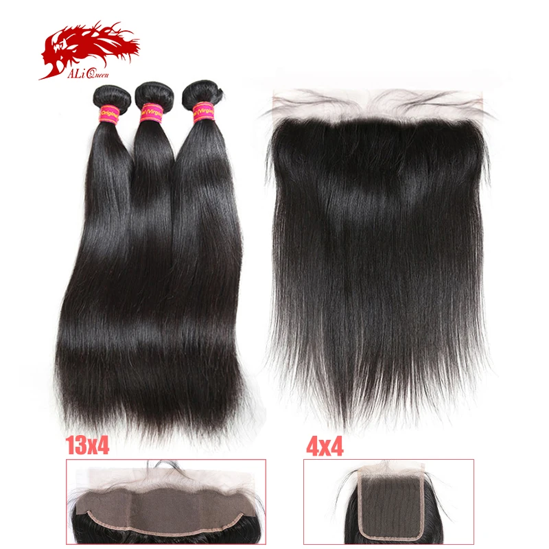 Прямые человеческие волосы Ali Queen, 3 шт., пучки с прозрачной кружевной передней частью 13 х4 HD, бразильские натуральные человеческие волосы без повреждений, двойное натяжение