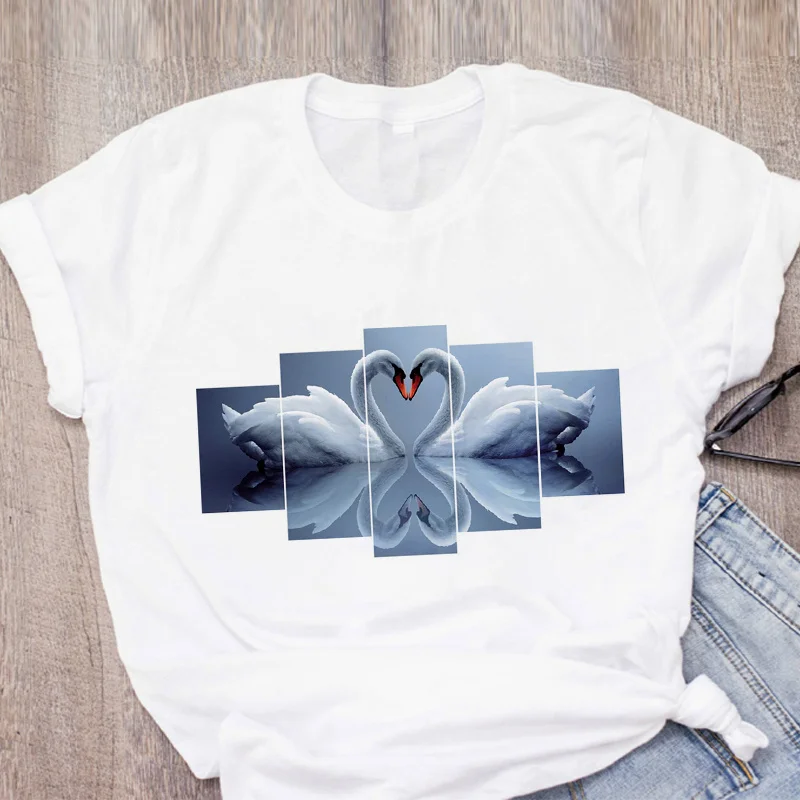 Футболка женская с мультяшным принтом, милая Дамская рубашка с граф...