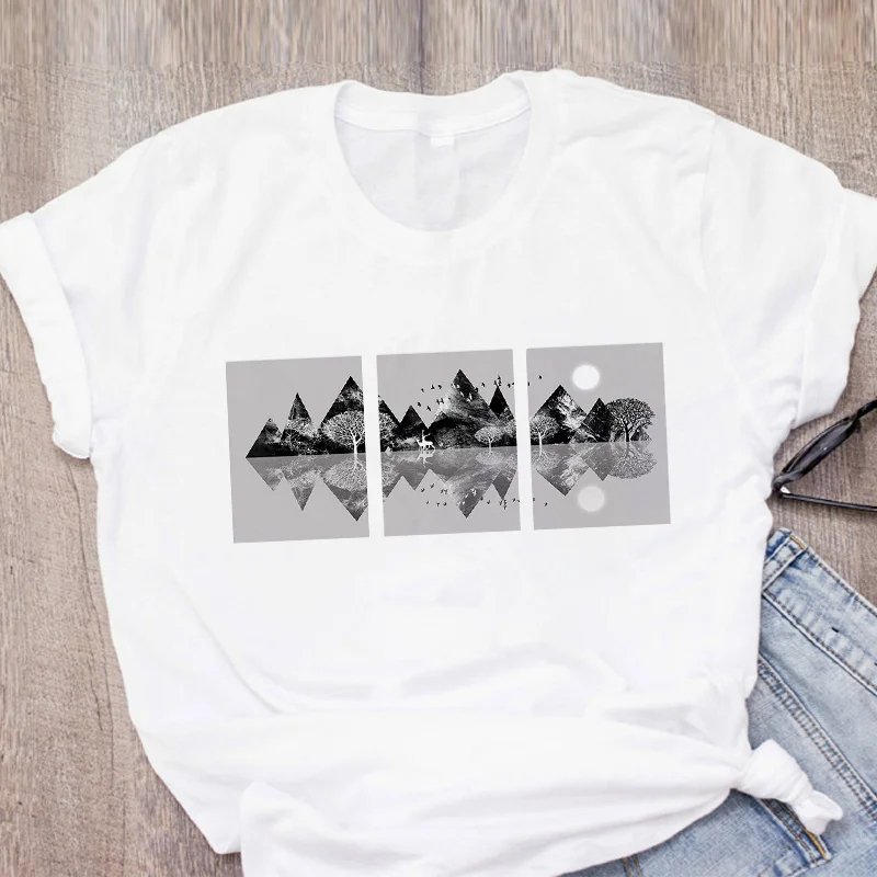 Летние топы; Эстетическая Футболка с принтом горы; Женская Винтажна...