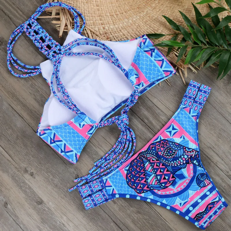 Новинка 2020, комплект бикини для девушек, бикини, купальники, женский купальник с принтом в виде слона, многоцветный купальник с низкой талией, Большая распродажа, накладки пуш-ап