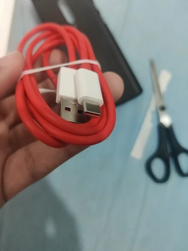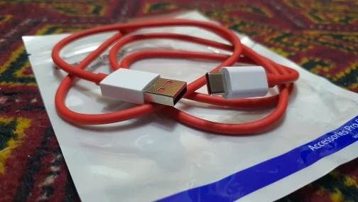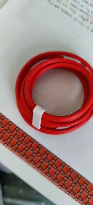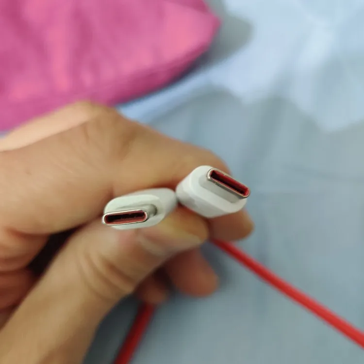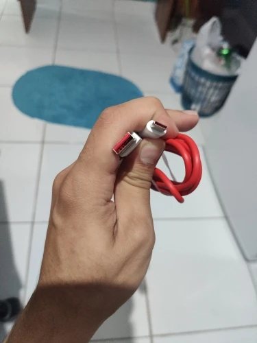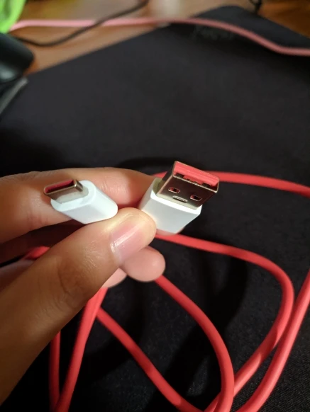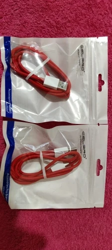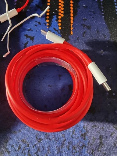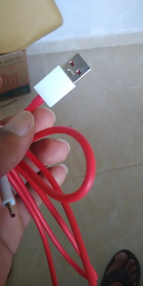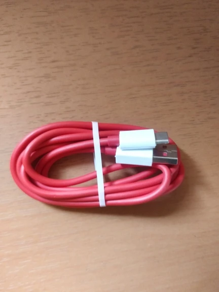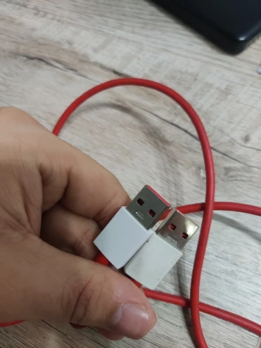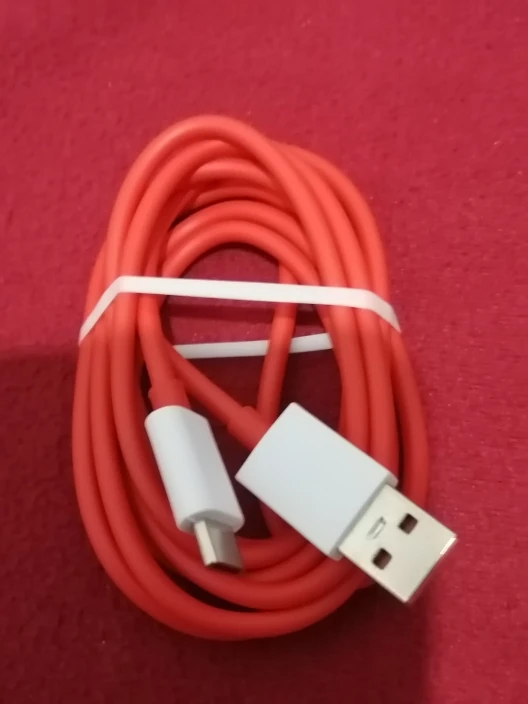 Кабель работает на OnePlus, он намного тоньше, чем кабель питания (зарядное устройство), не знаю, тоньше ли качество продукта меньше, не часто выглядит Премиум, как зарядный кабель. Провода экранированы резиновым красным, а адаптер типа C (type C) белого цвета с красным дном также меньше по сравнению с зарядным кабелем, как на последней фотографии.