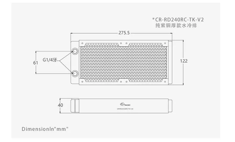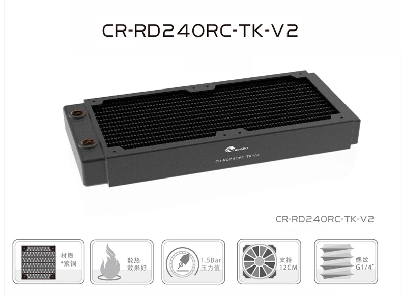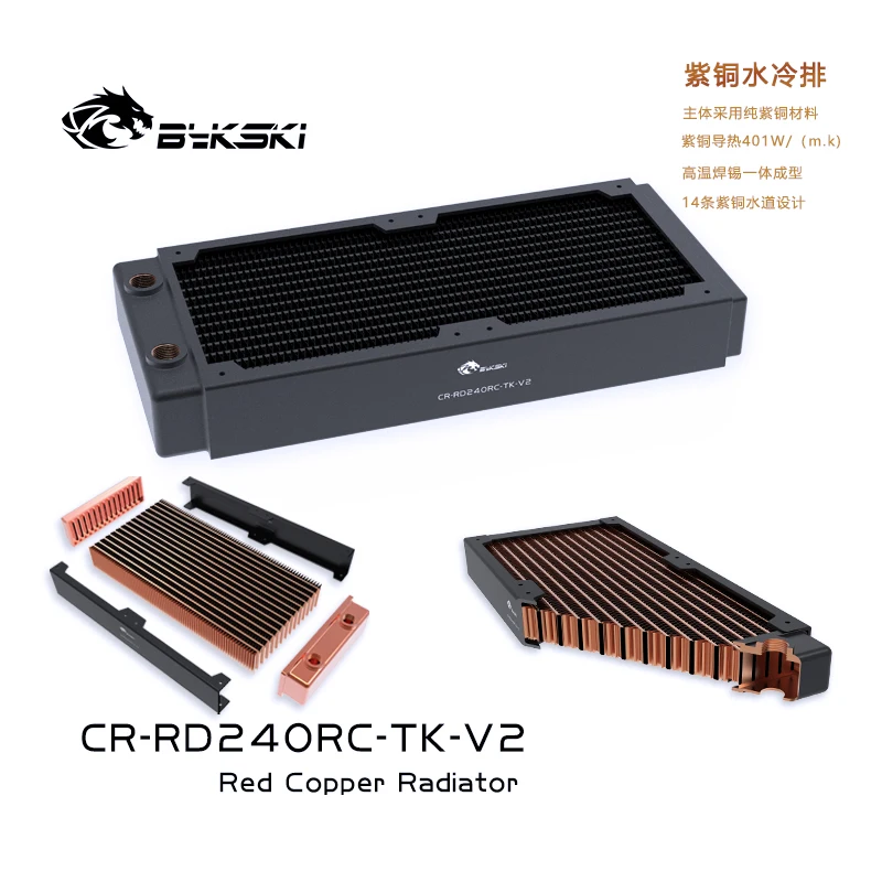 Медный радиатор Bykski толщиной 40 мм толщиной 240 мм, компьютерный водяной разрядный радиатор охлаждающей жидкости, теплообменник для радиатора вентилятора 2*12 см