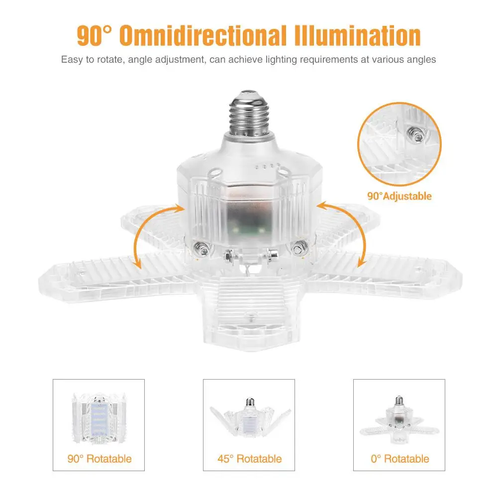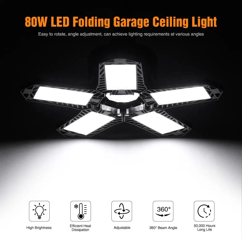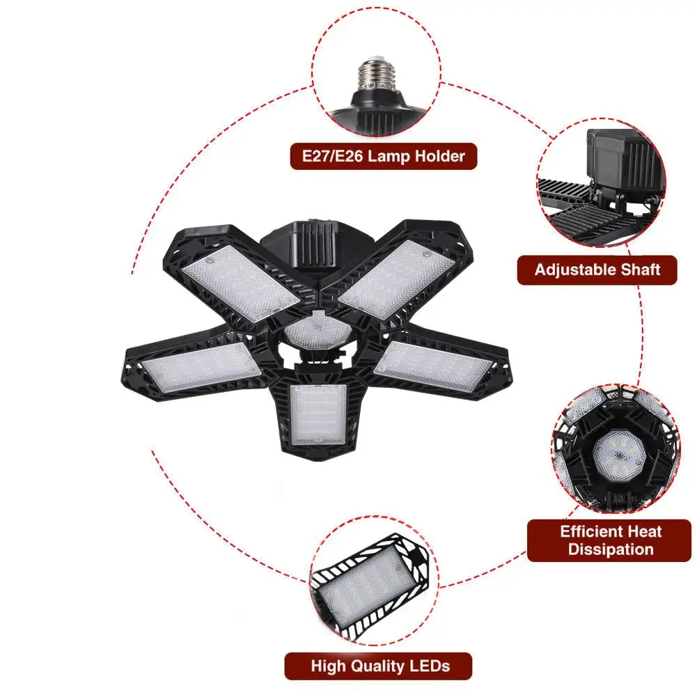 Светодиодный светильник для гаража с пятью листьями, складной потол...