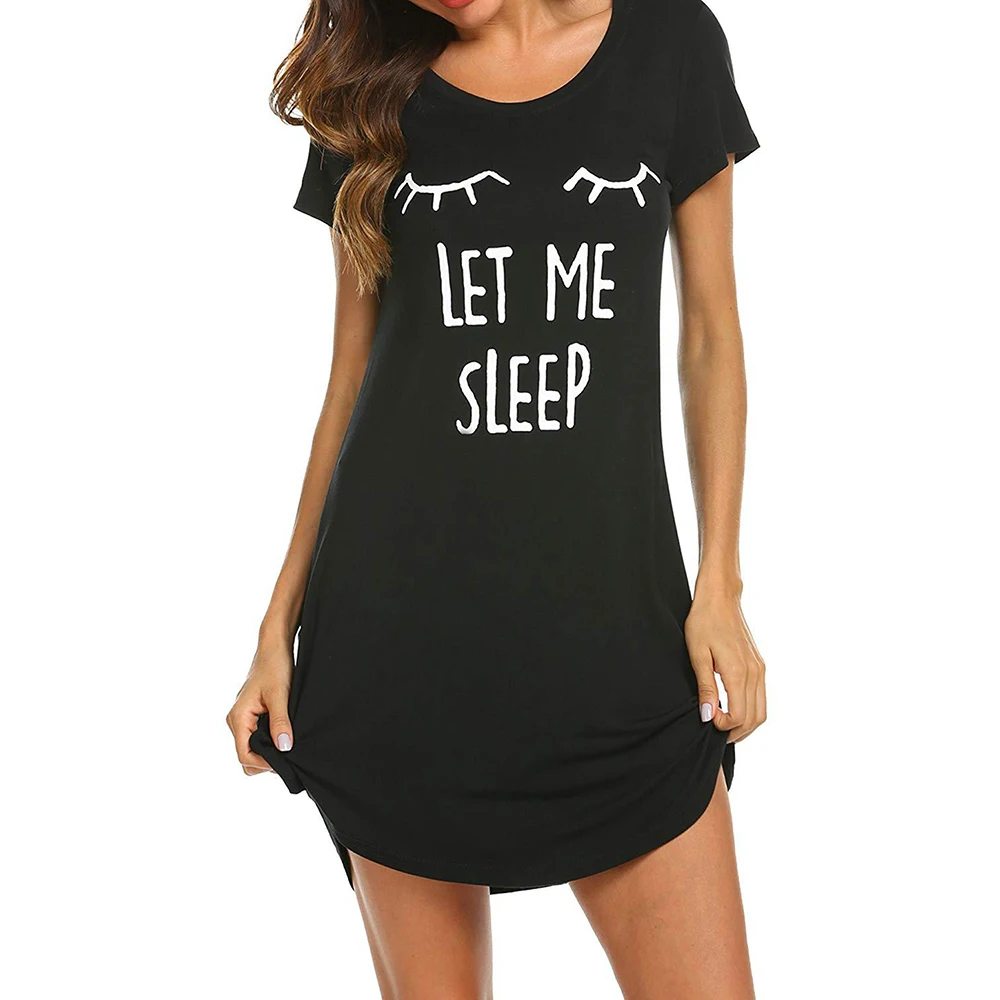 Женская ночная рубашка с круглым вырезом и коротким рукавом