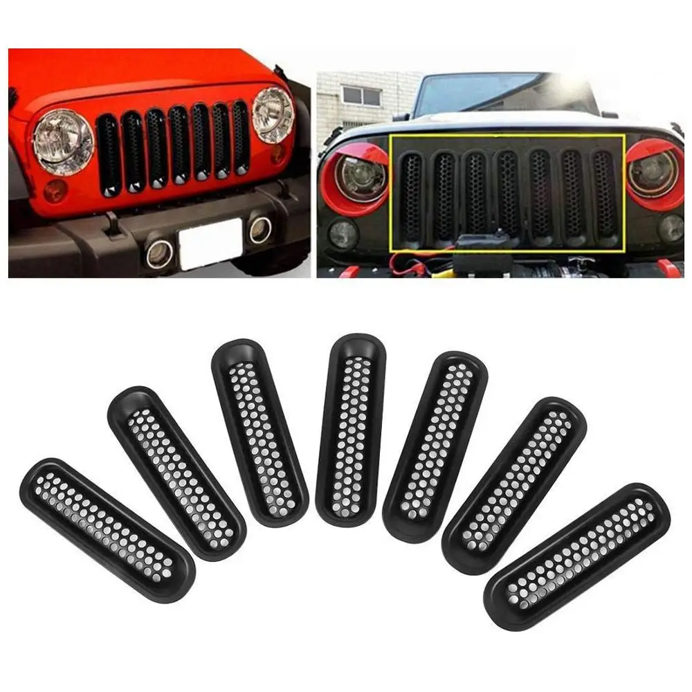 7 шт., передняя решетка, сетчатая наклейка, автомобильная передняя вставка, решетка для Jeep Wrangler JK 2007-2017, 2 двери, 4 двери, украшение ГРИЛЬ ДЛЯ ДЖИПА Для гриля джипа Для решетки радиатора jeep jk Для jeep jk