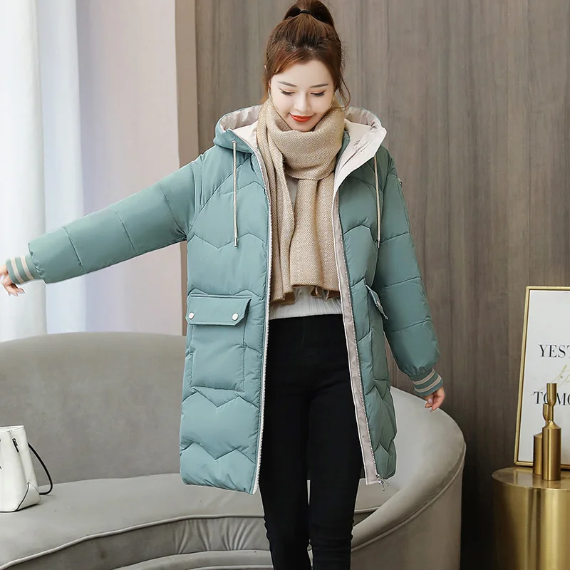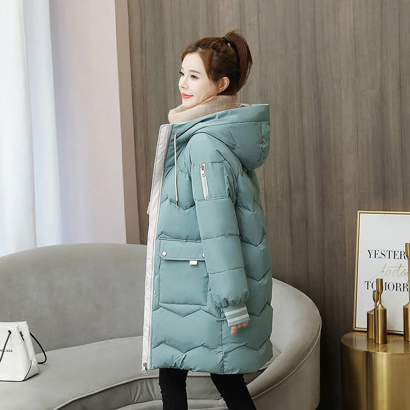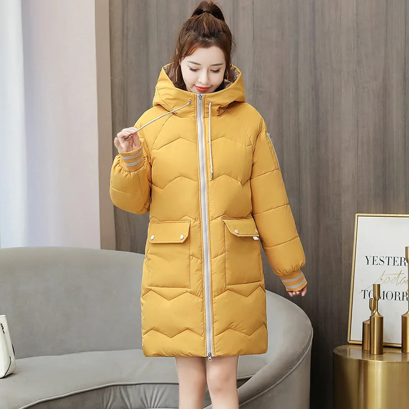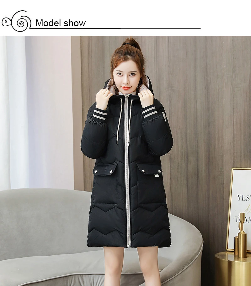 Женский зимний пуховик большого размера, однотонное длинное пуховое пальто с капюшоном, Женская Повседневная Свободная толстая верхняя одежда с большими карманами для женщин