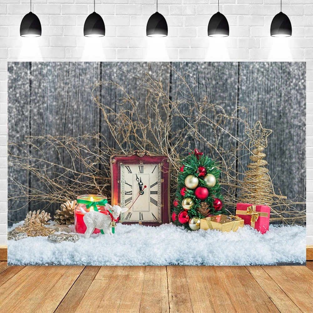 Фотофон Laeacco с часами, новогодними и рождественскими шарами и зв...