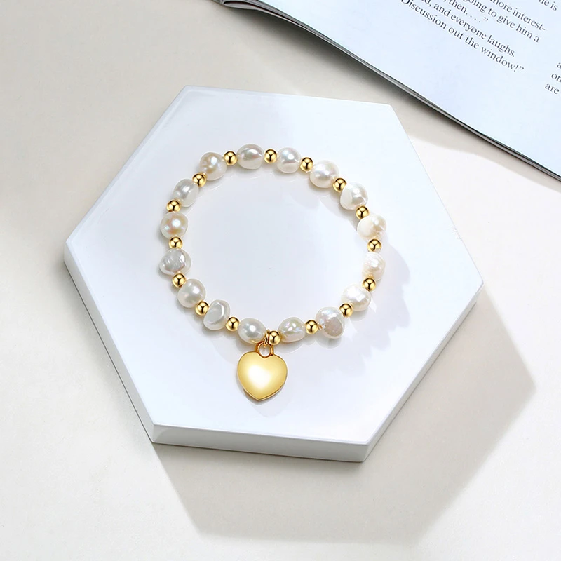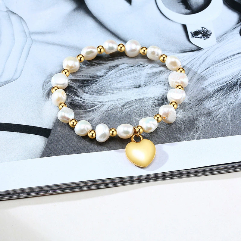 Элегантный браслет с подвеской в виде сердца из нержавеющей стали с рельефной гравировкой