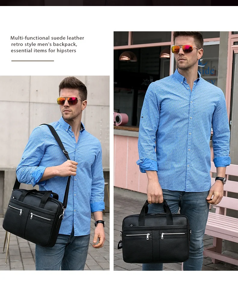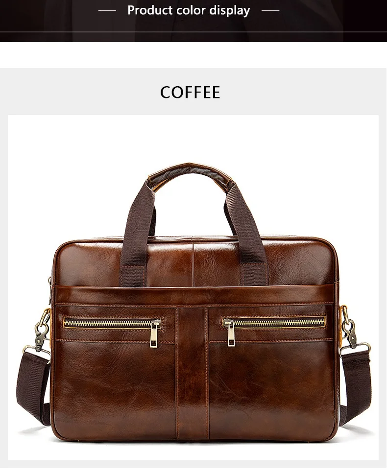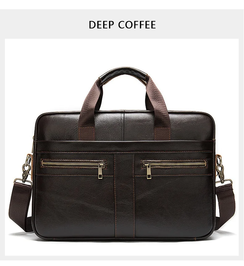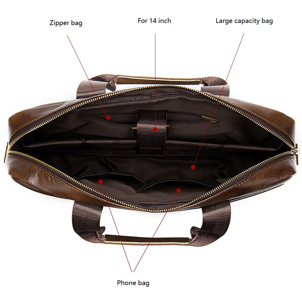 Мужская сумка для ноутбука, из натуральной коровьей кожи, водонепроницаемая, деловая, дорожная, для ноутбука 14, 15,4 дюймов