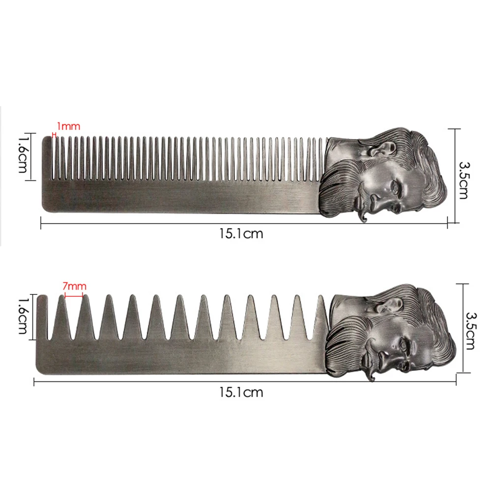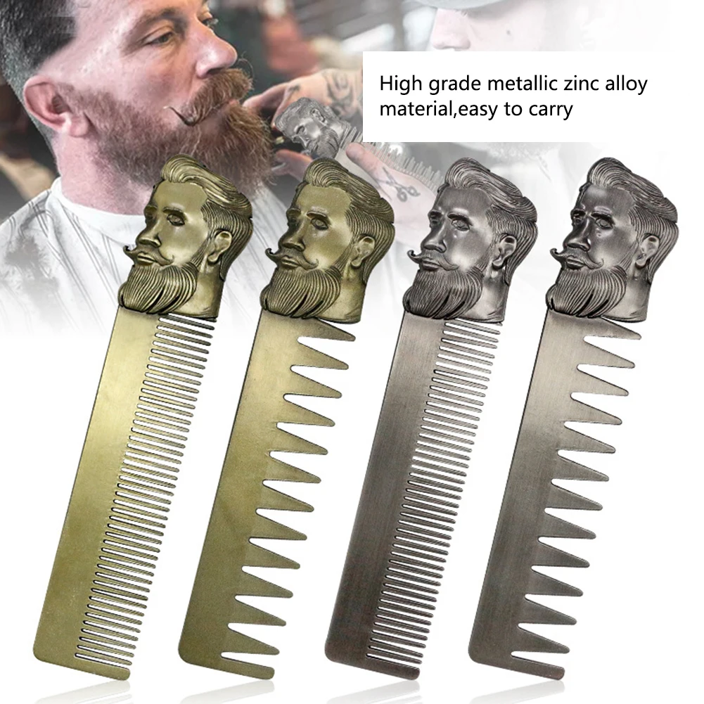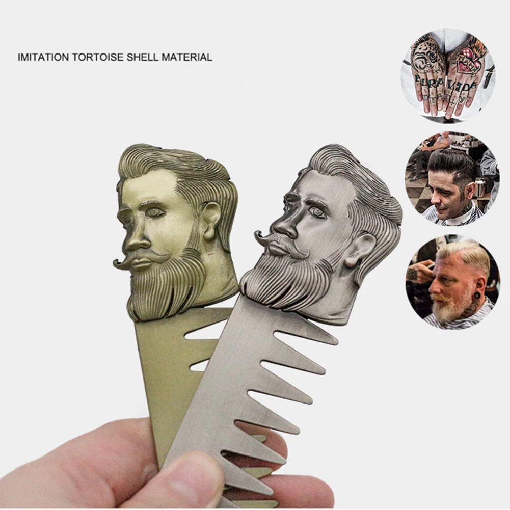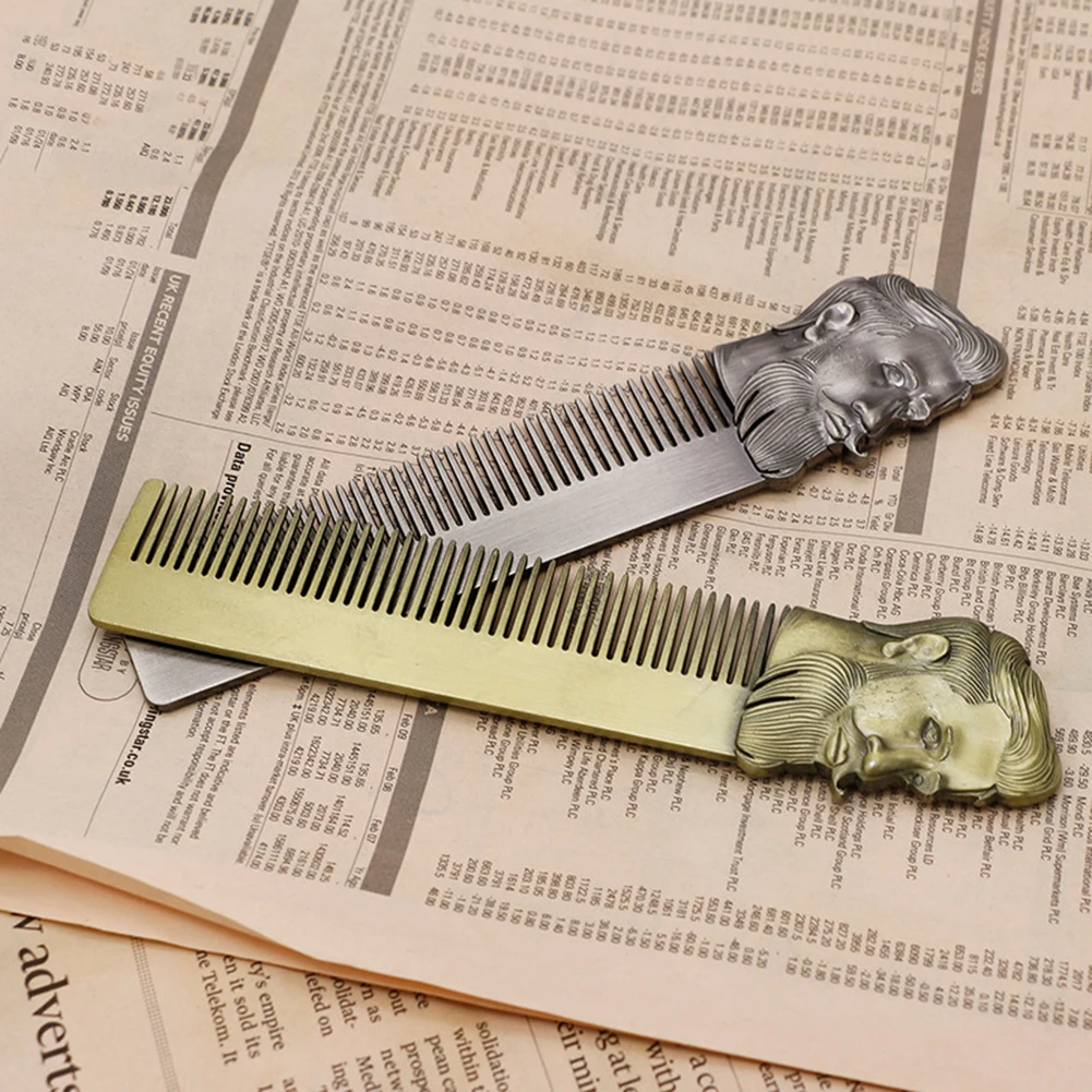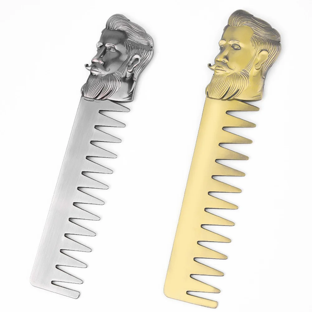 Металлическая Расческа для парикмахерской, крутая Мужская Расческа для бороды из нержавеющей стали, инструменты для ухода за усами, карманный размер