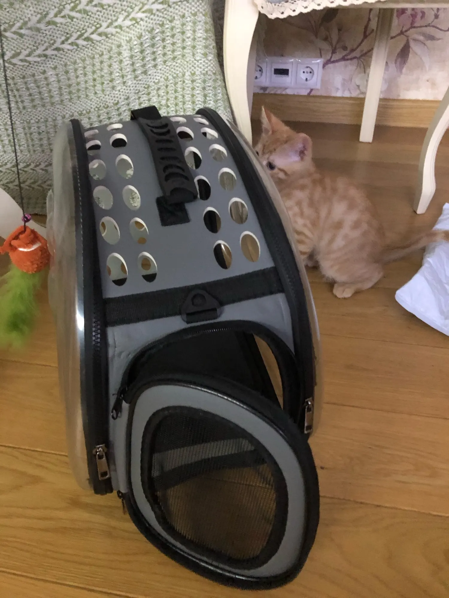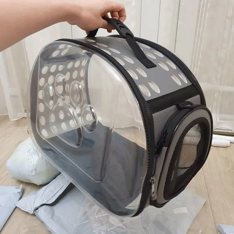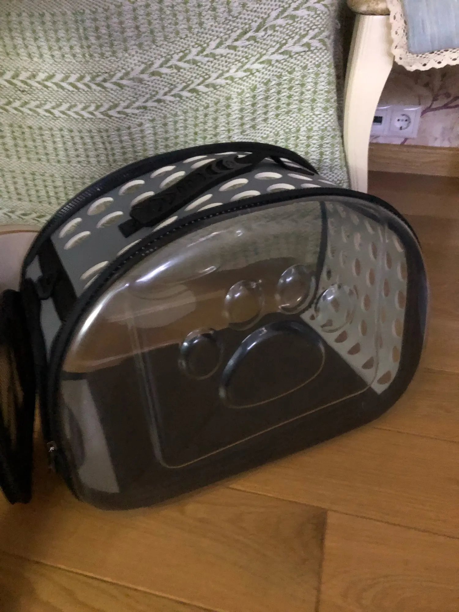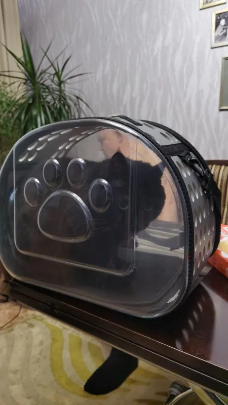 Плюсы: всё как на фото, жёсткий прозрачный пластик покрыт защитной плёнкой. Животное всё видит. Дно дополнено подложкой. Стенки на молнии, снимаются, удобно хранить. Для взрослых кошек и маленьких собак. Минусы: резкий запах дешевого пластика. На квартиру не распространился, кот тоже не обратил на это внимания.