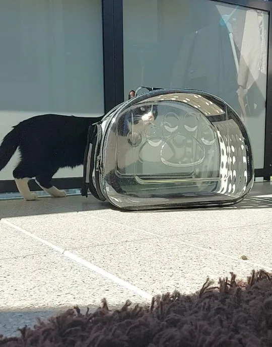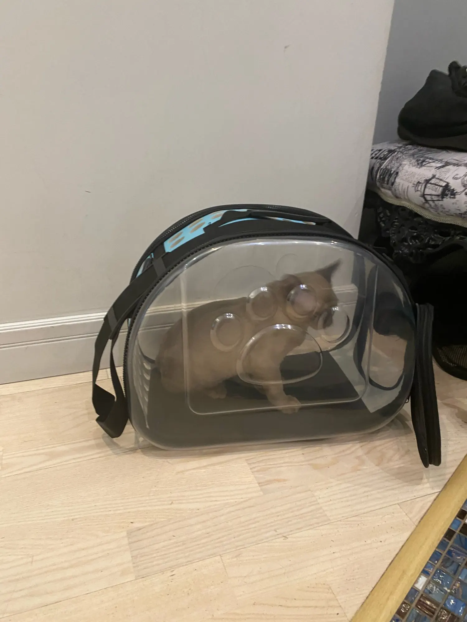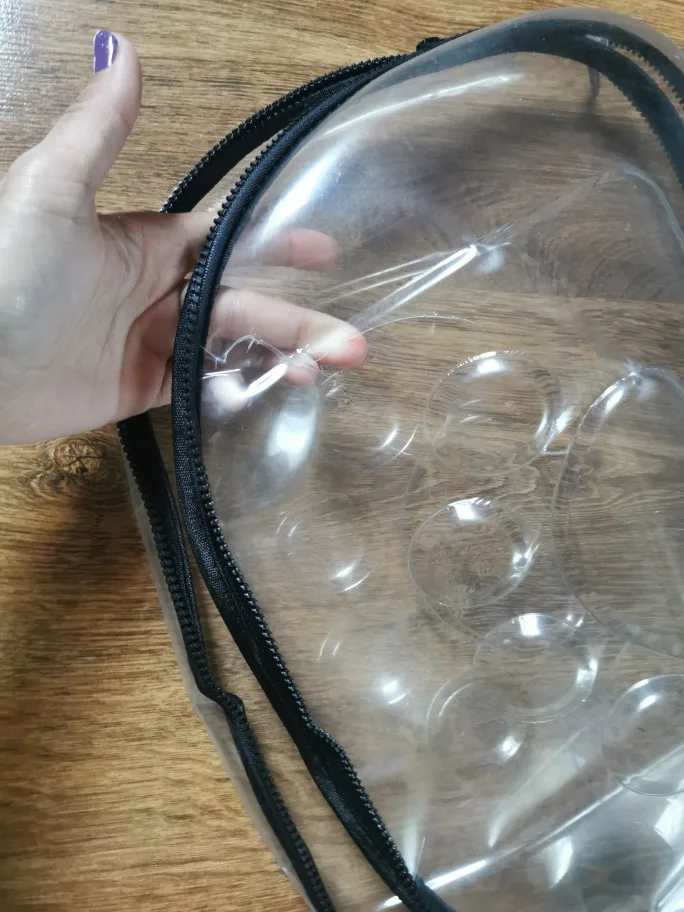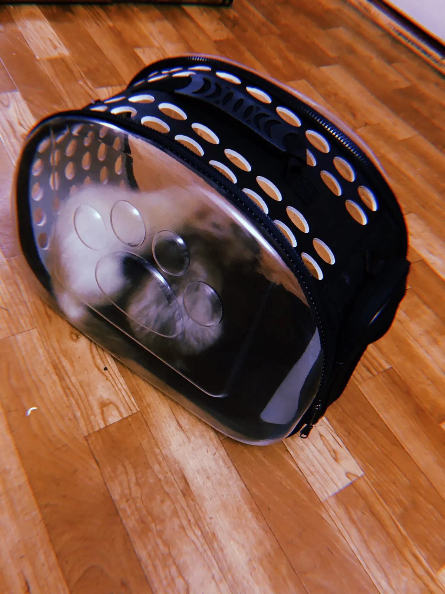 Плюсы: всё как на фото, жёсткий прозрачный пластик покрыт защитной плёнкой. Животное всё видит. Дно дополнено подложкой. Стенки на молнии, снимаются, удобно хранить. Для взрослых кошек и маленьких собак. Минусы: резкий запах дешевого пластика. На квартиру не распространился, кот тоже не обратил на это внимания.