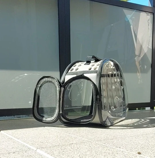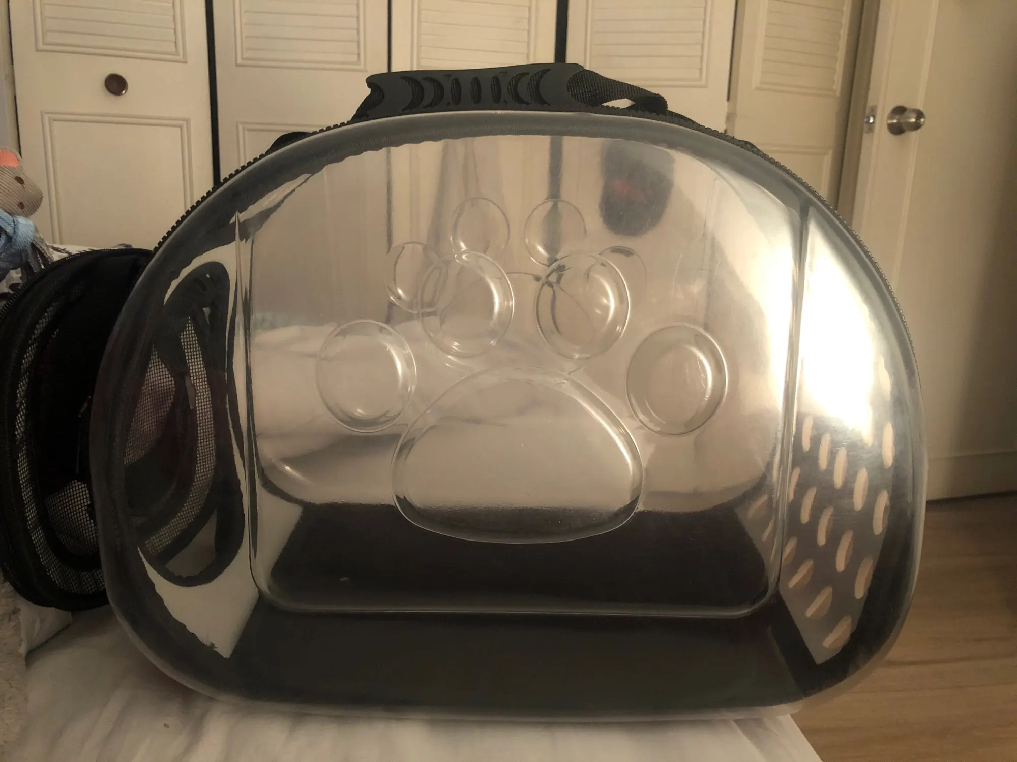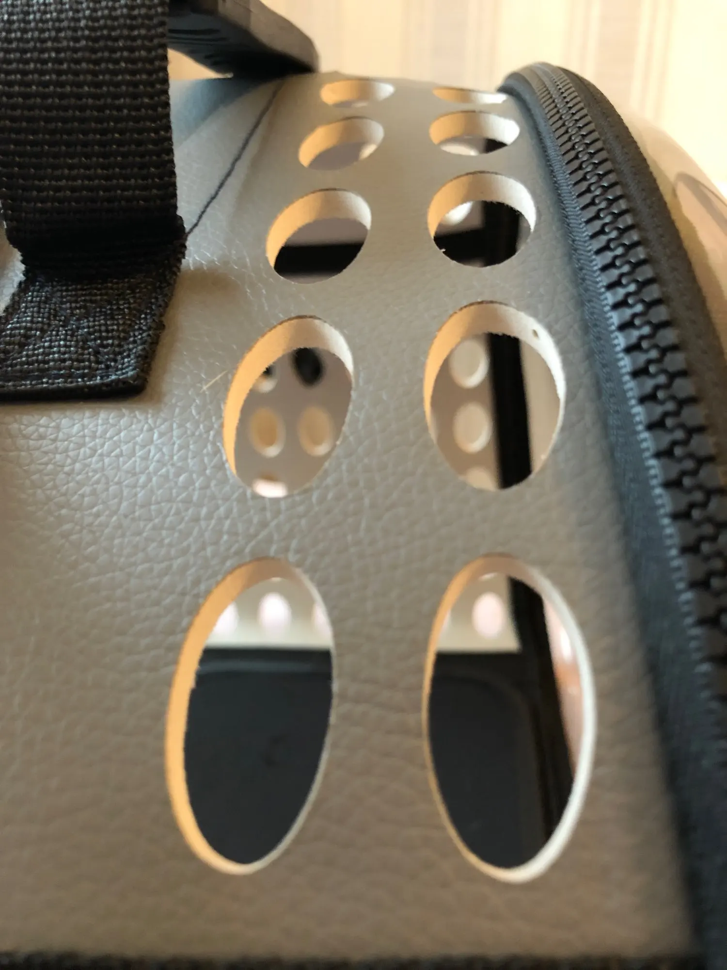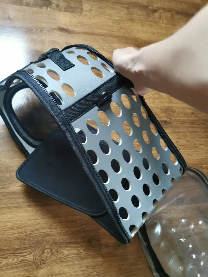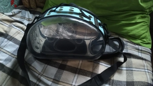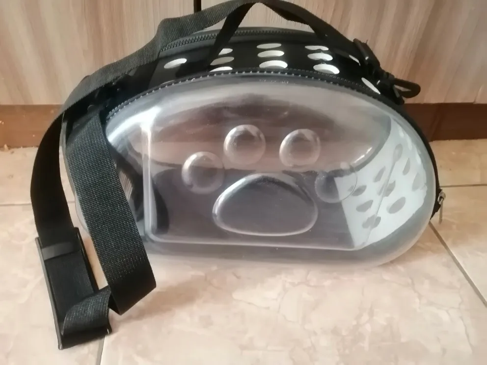 Это красивая сумка для домашних животных. Он пришел немного поврежден (может быть лучше защищен для длительного путешествия), но все еще может быть использован. Совет продавцу: оберните еще несколько пузырьков вокруг пластиковых сторон.