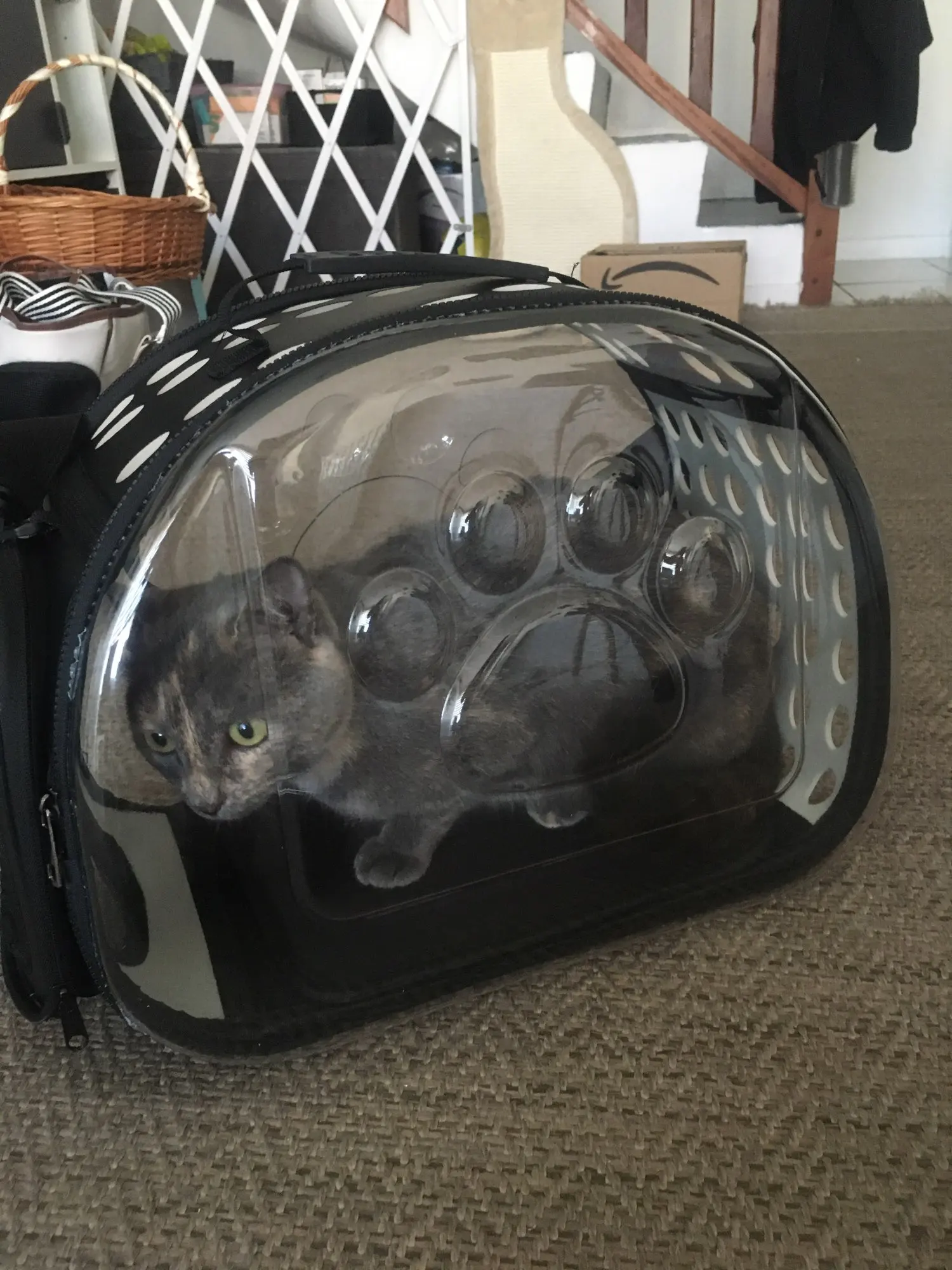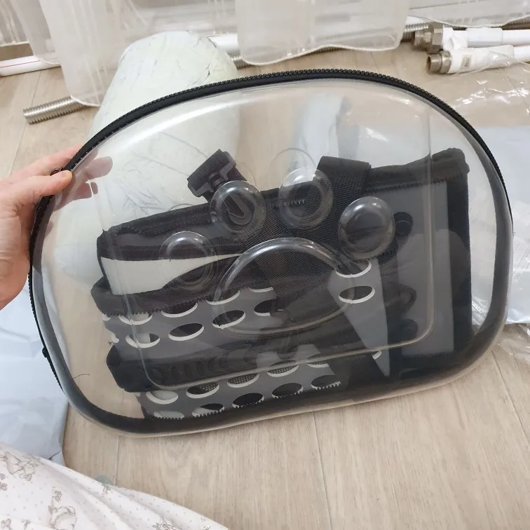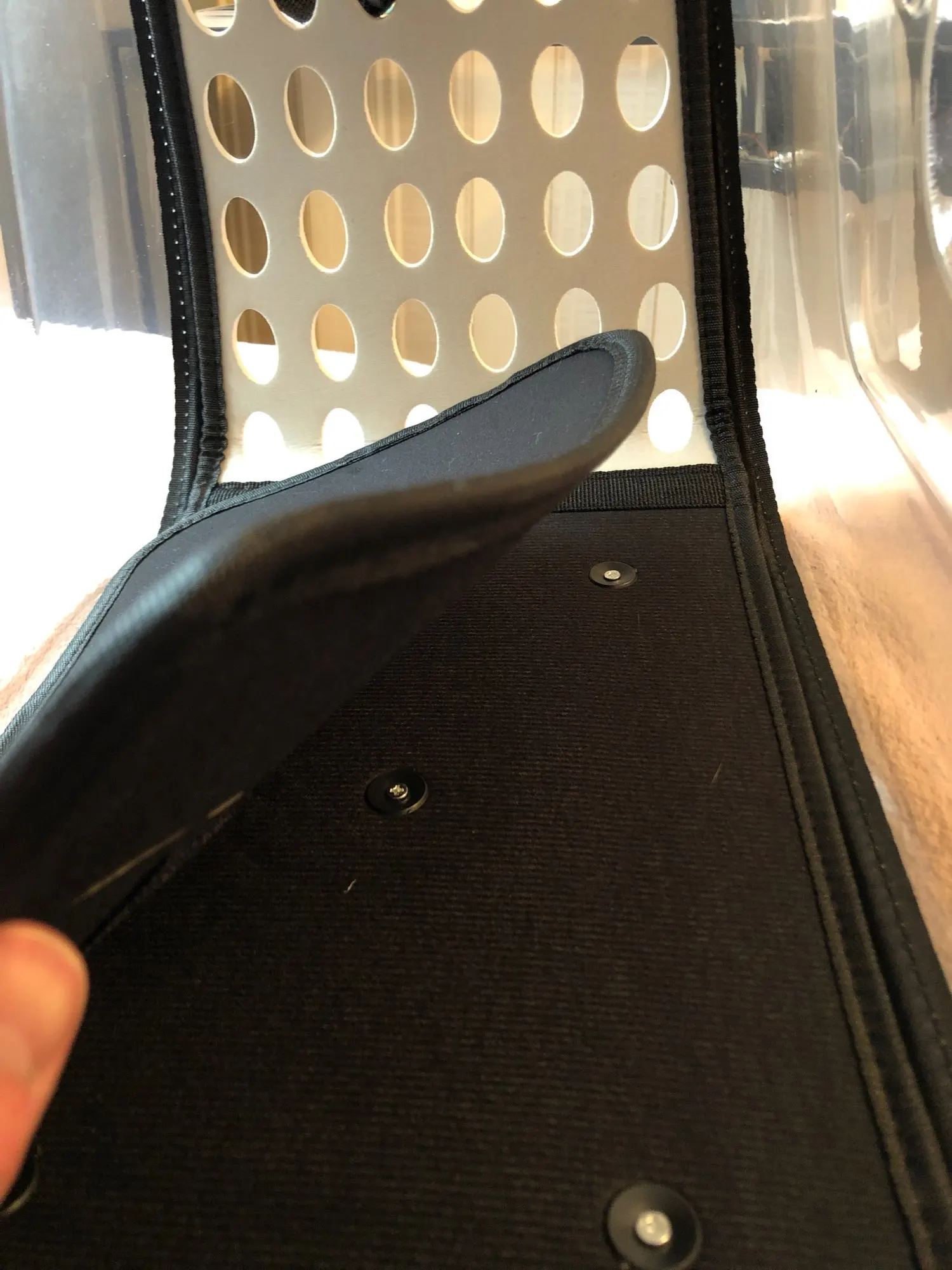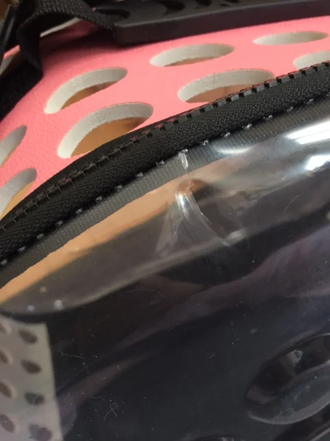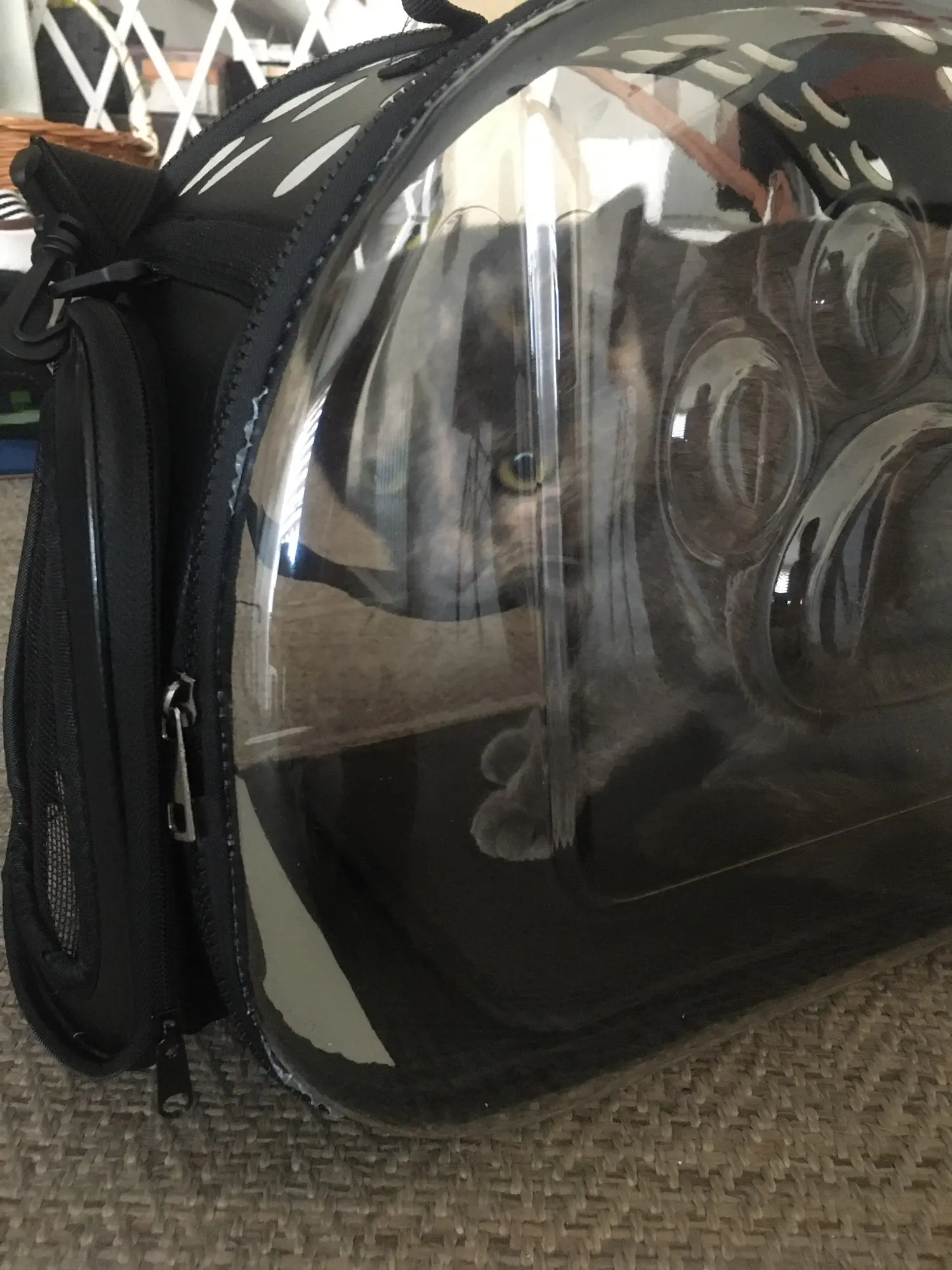 Это красивая сумка для домашних животных. Он пришел немного поврежден (может быть лучше защищен для длительного путешествия), но все еще может быть использован. Совет продавцу: оберните еще несколько пузырьков вокруг пластиковых сторон.