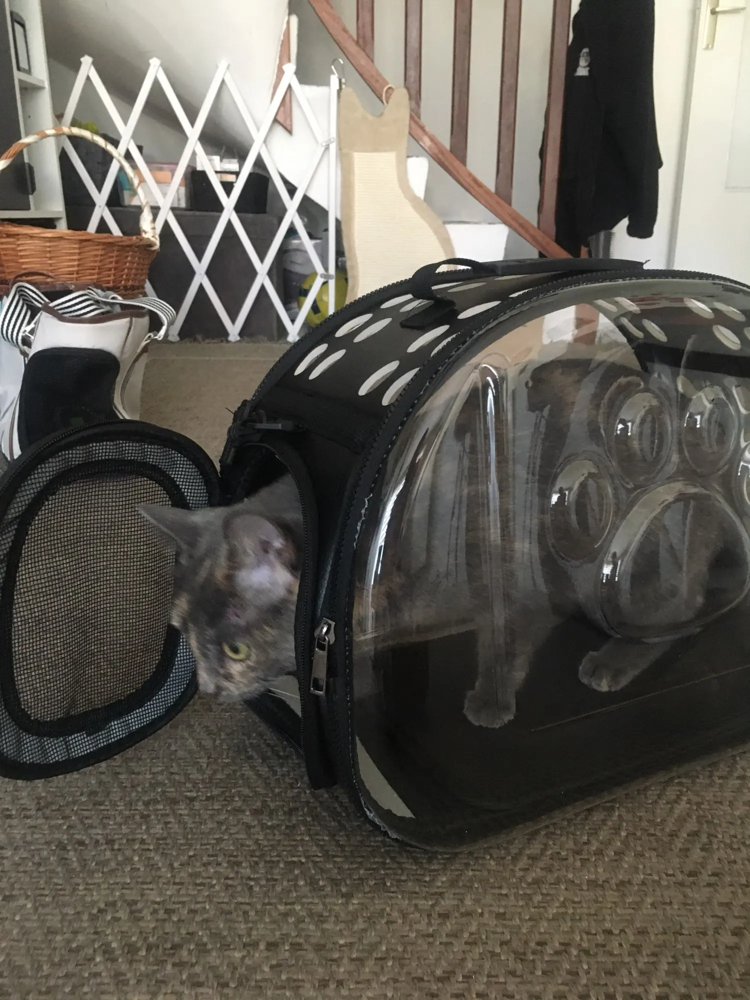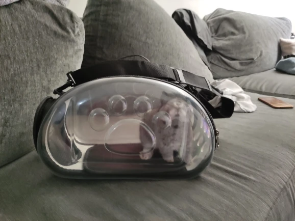 Cumple con las expectativas. El tamaño es ideal para mi mascota. Solo encuentro un poco difícil de abrir o cerrar la puerta por donde ingresa y sale la mascota pues es diferente la calidad a la de las tapas transparentes y se hace a veces difícil manipularla. Es necesario airearlo dado que huele bastante a plástico, algo normal en un artículo nuevo.