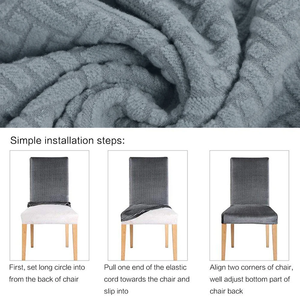 Тип: чехлы для обеденных стульевРазмер: Высота спинки: 45-60 смДлина и ширина сиденья: 40-50 смЦвет: зеленый, серебристо-серый, светильник-серый, черный, винный, кофейныйМатериал: 92% полиэстер 8% спандексУпаковка: 1 шт. х чехлы для стульевОсобенности:Полиэстер спандекс. Мягкий материал, удобный и устойчивый к морщинкам, не требует глажки.Растягивающийся материал, растягивающийся, быстро восстанавливается, надежно прилегает к пришитой эластичной кромке.Машинная стирка, легко моется и моетсяПусть ваш старый или уродливый стул будет выглядеть как новый и более красивый. Также может предотвратить царапины и укусы вашего стулаОн используется для отеля, свадебного банкета, ужина, встречи, торжества, церемонии, украшения семейной столовой и т. д.