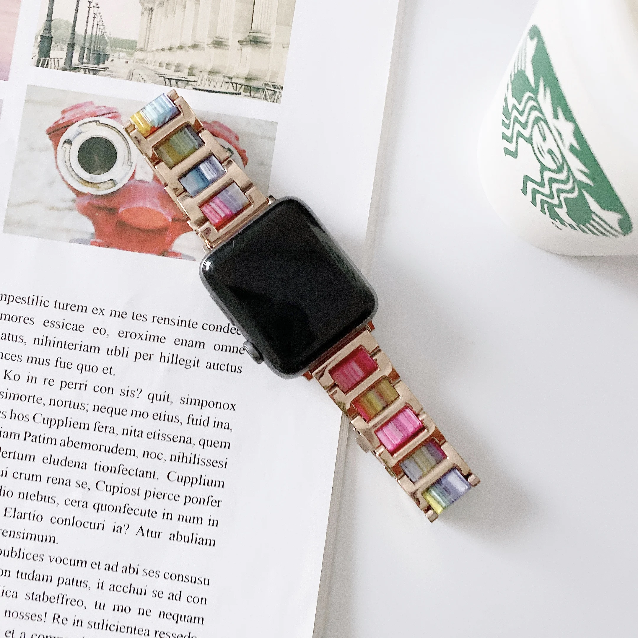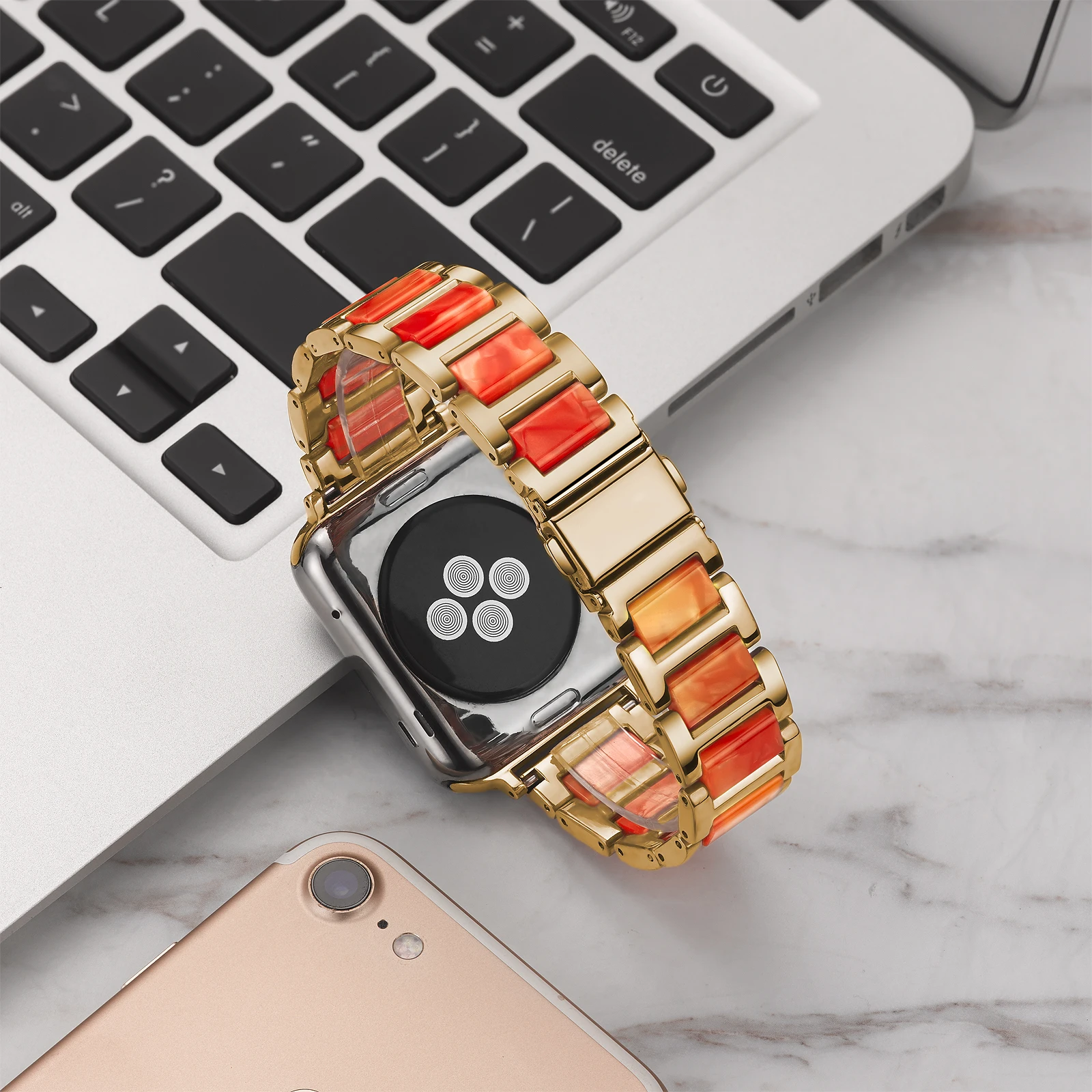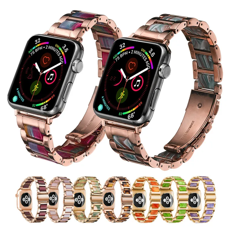 Ремешок из нержавеющей стали и полимера для Apple Watch 40 44 38 42 мм, цветной браслет для iWatch Series 5 4 3 2 1
