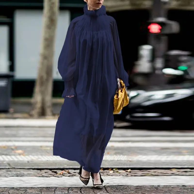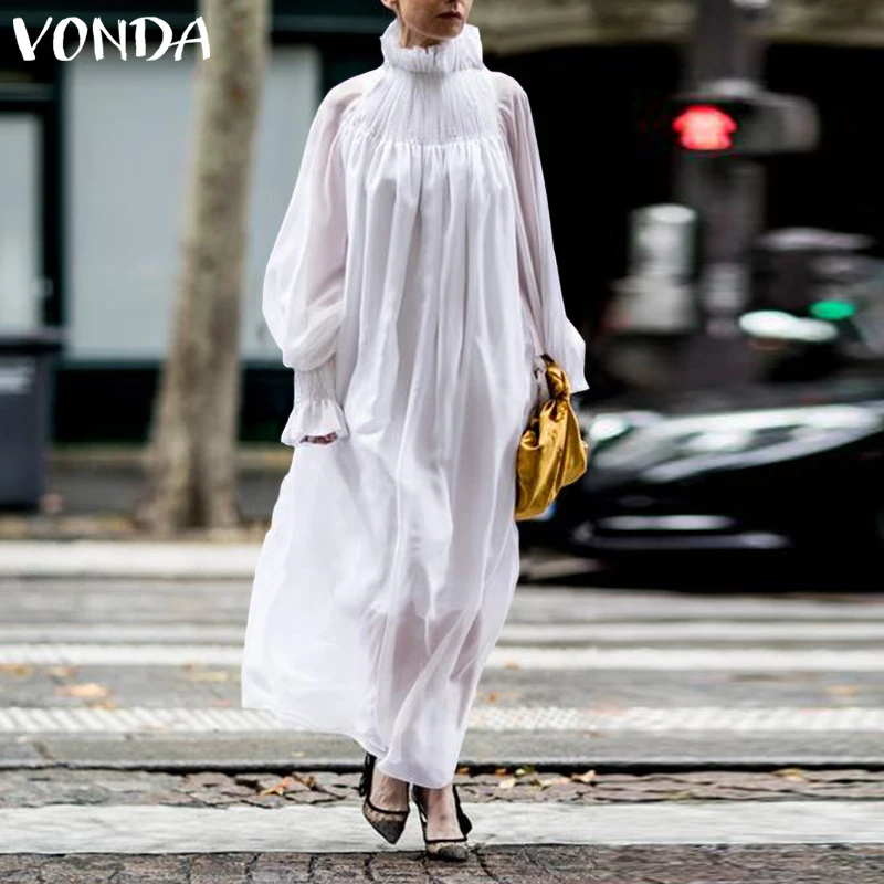 Длинное платье-макси VONDA 2022, женские повседневные однотонные вечерние платья с длинным рукавом, свободный элегантный пляжный сарафан, женские вечерние платья