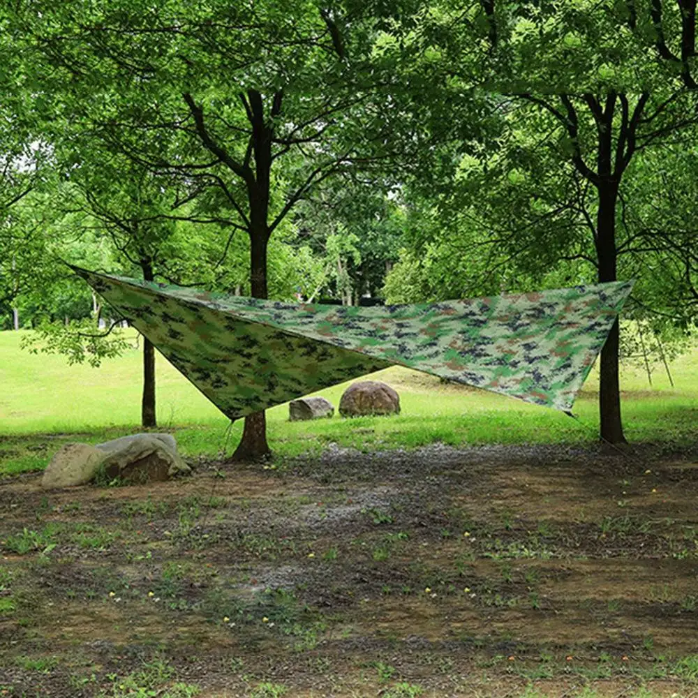 1. Супер водонепроницаемый-интерьер с серебряным покрытием и ПУ 1500 мм водонепроницаемый. Он обеспечивает отличную защиту от дождя, внезапных падений, снега и высоких ветров. (Камуфляж не покрыт серебром) 2. Непрерывное затенение-палатка покрыта солнцезащитным покрытием внутренний слой, легкий брезент может обеспечить УФ-защиту на солнце. Отлично подходит для кемпинга, альпинизма, пеших прогулок или других приключений. 3. Легкий и компактный-очень легкий навес для кемпинга, сложенный в сумке, вы почти не заметили, что носите его. Посылка маленькая и может быть размещена практически в любом небольшом пространстве. 4. Простота установки-использование в качестве сверхлегкого брезента от дождя, аварийного укрытия, палатки или навес для кемпинга. Легко покрывает двойной гамак палатки и укрытия. 5. Широкий спектр применения-Защита от УФ, водонепроницаемость, один брезент для всех условий и сезонов. Отлично подходит для кемпинга, альпинизма, пеших прогулок или других приключений.