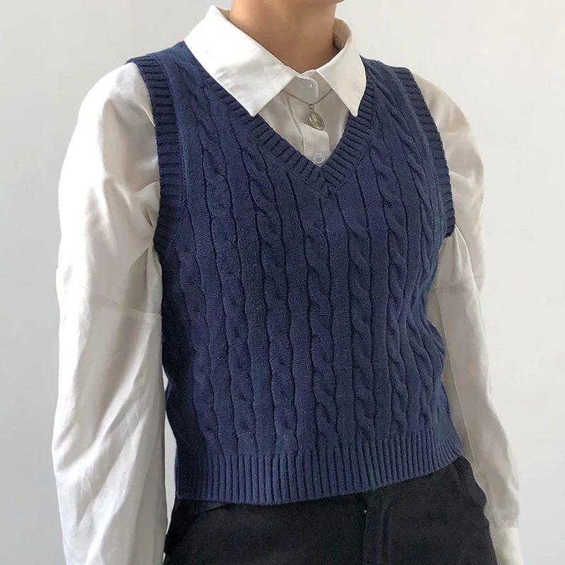 Однотонный Повседневный свитер HEYounGIRL без рукавов, жилет в стиле преппи, вязаные Джемперы, Женская винтажная Корейская уличная мода 2021