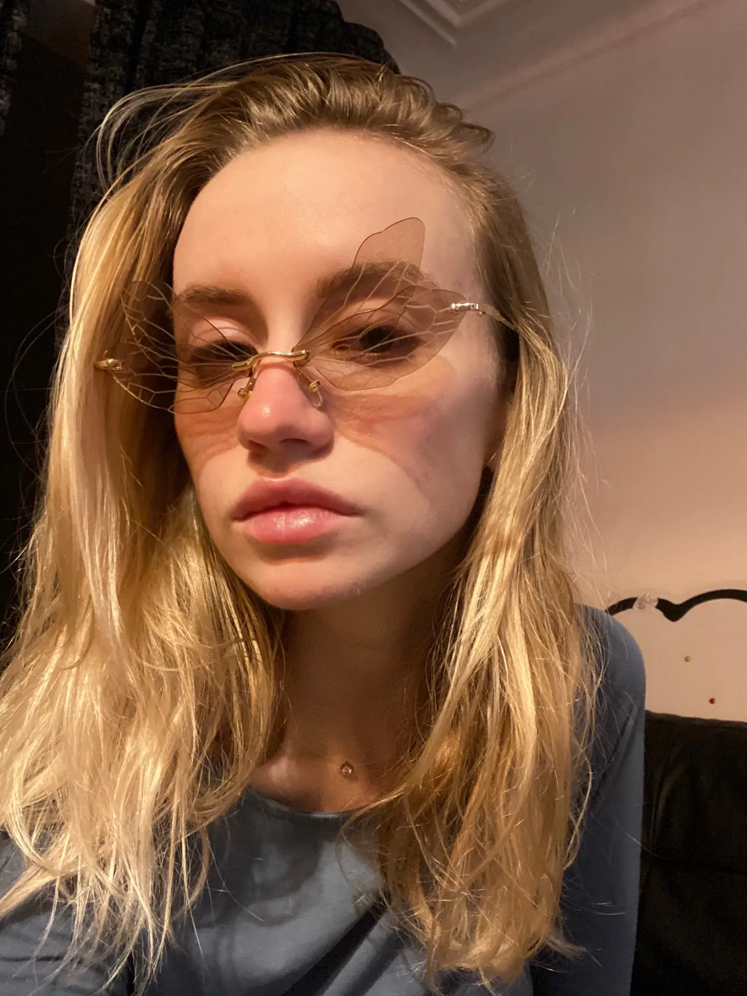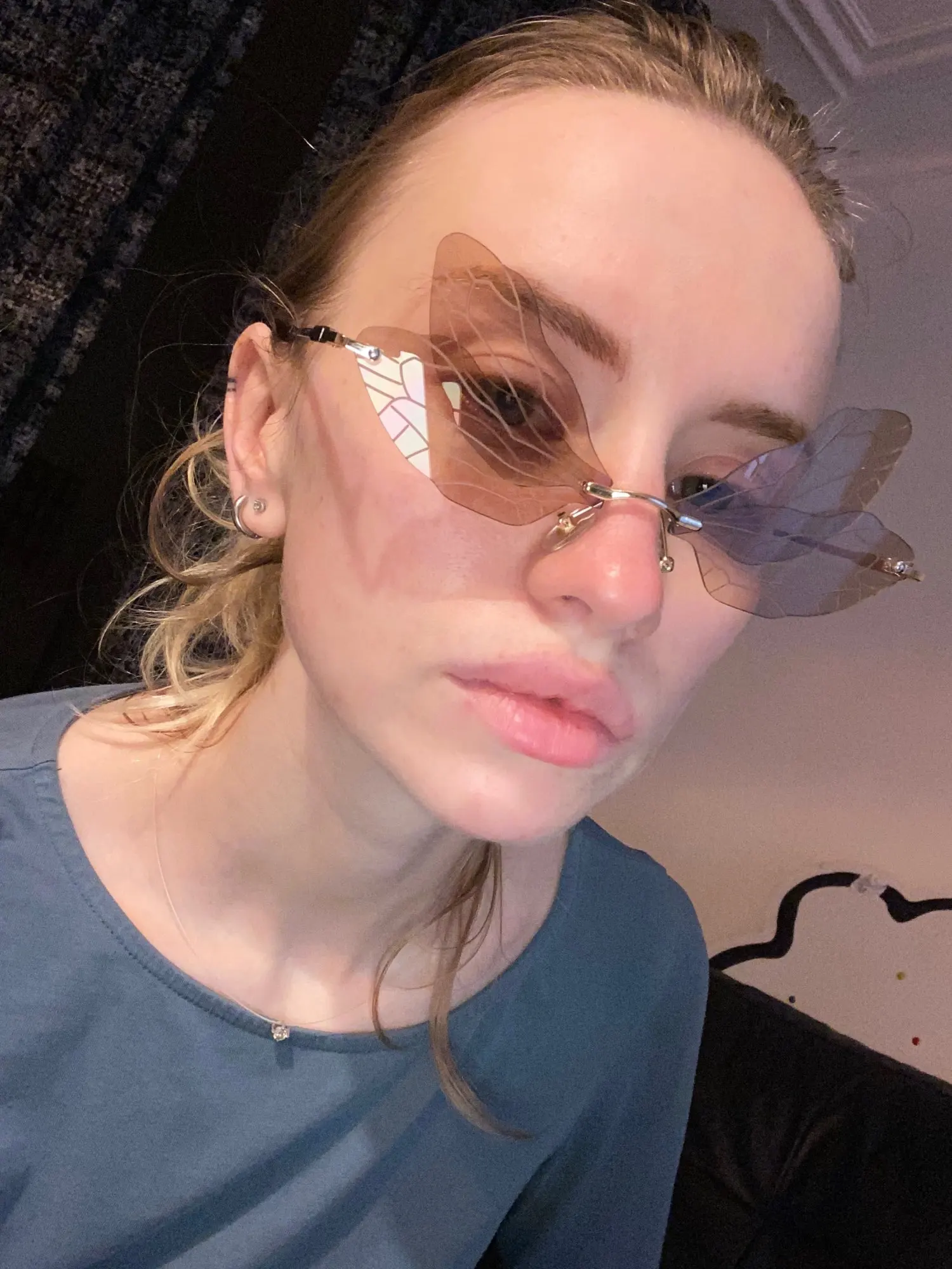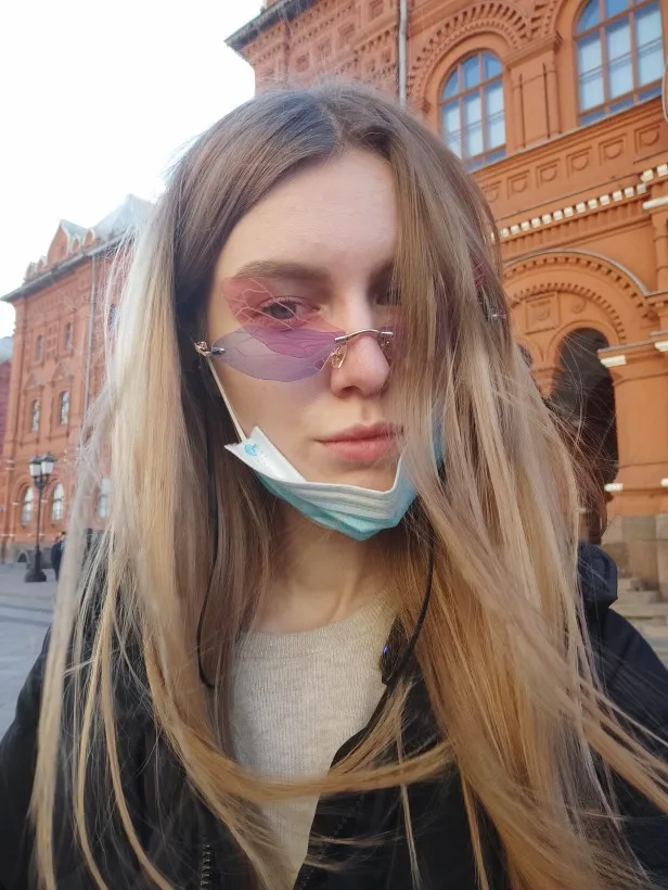 Классные очки, яркие, чисто для фоток шикарно будет. В них плохо видно, и они не на все типы лица, на мой прямоугольник нужно спускать их ниже по переносице, чтобы выглядело нормально. Но опять же, они очень хороши для фото.